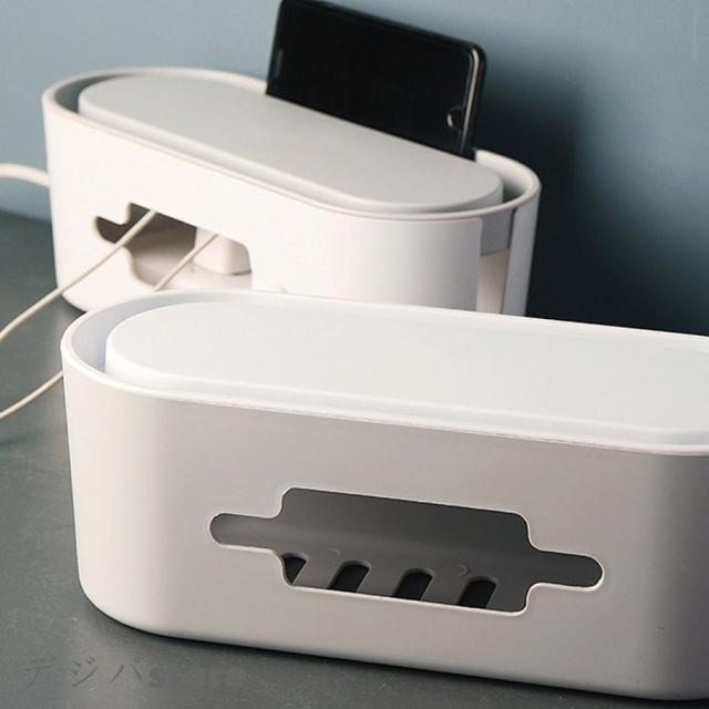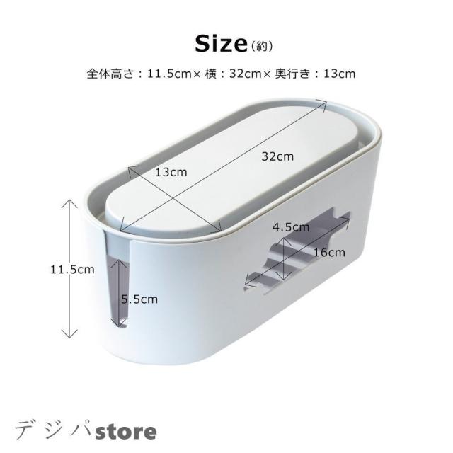 | サイズについての説明 | コンセント タップ 電源タップ 隠し 隠す ボックス 蓋付き 収納 おしゃれ コード 整理 目隠し まとめる | ケーブルボックス コードケース ケーブル収納 電源配線 トラッキング予防 配線カバー おしゃれ 電源タップをそのまま入れるだけで、ごちゃつく配線をスッキリと収納できる電源配線収納ケースです。 シンプルで優しい曲線のケースは圧迫感がなく、どんなお部屋にもマッチします。 本体は左右・上部・全面、様々な方向へコードを出すことができるので、今お使いの家電やインテリアの配置を変えることなく、そのままお使い頂けます。 トラッキング予防や、小さなお子様・ペットのいたずら防止にもなります。 ※このケースはトラッキング現象を完全に防ぐものではありません。定期的なメンテナンスをお勧め致します。 本体の底にはエアーフローとして十分な通気口を開け、内部の温度上昇を抑えます。 ■ カラー選択:ホワイト/ライトグレー ■ サイズ(約):全体 H11.5cm×W32cm×D13cm |