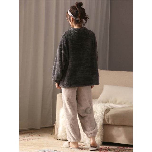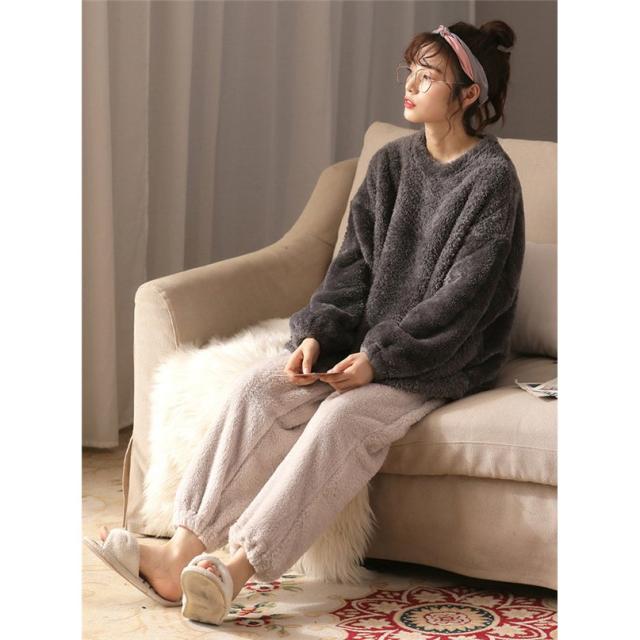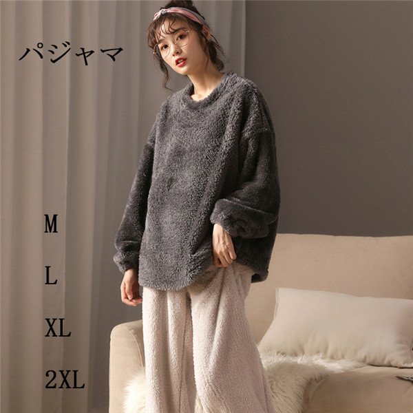 セット 寝巻き レディース パジャマ パジャマ 冬 前開き ルームウェア もこもこ 裏起毛 可愛い 長袖 パジャマ