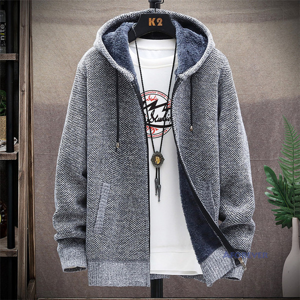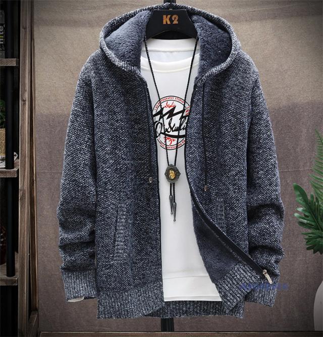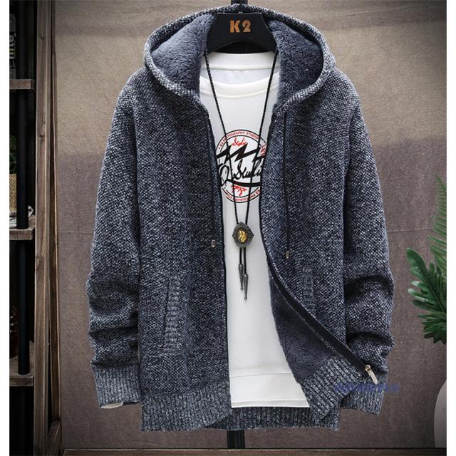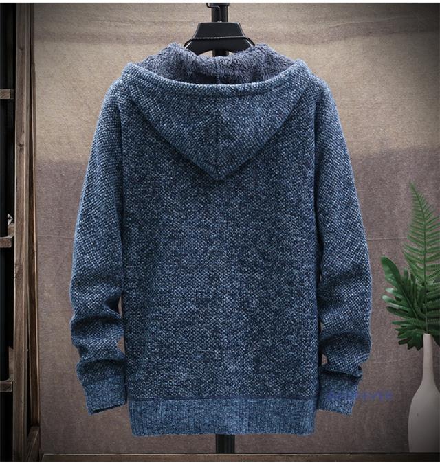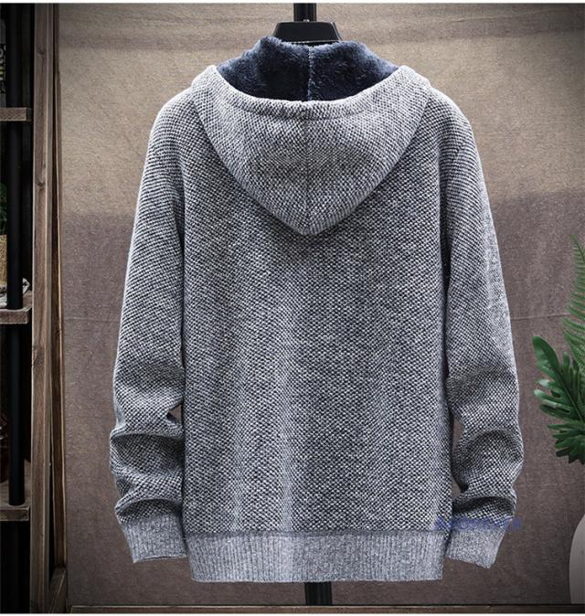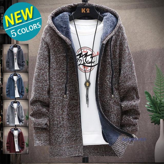 カーディガン 無地 メンズ ニットジャケット カーディガン 裏ボア 裏起毛 厚手 フード付き ニットカーディガン