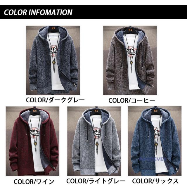 | サイズについての説明 | カーディガン 無地 メンズ ニットカーディガン ニットジャケット 裏ボア 裏起毛 厚手 フード付き アウター あったか 素材:ポリエステル |