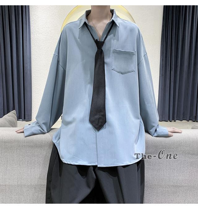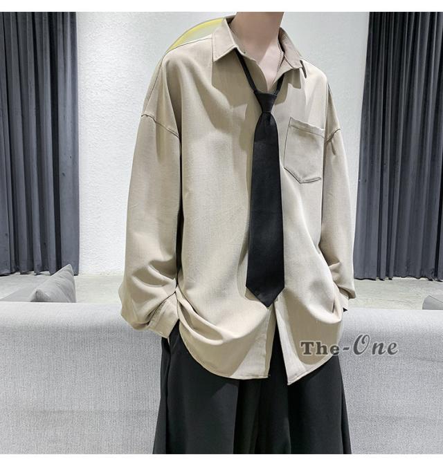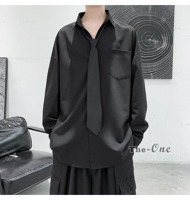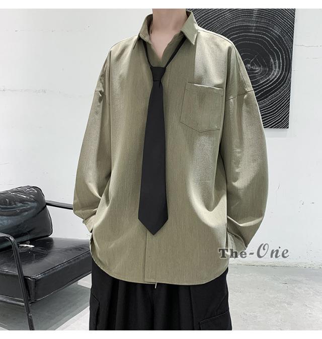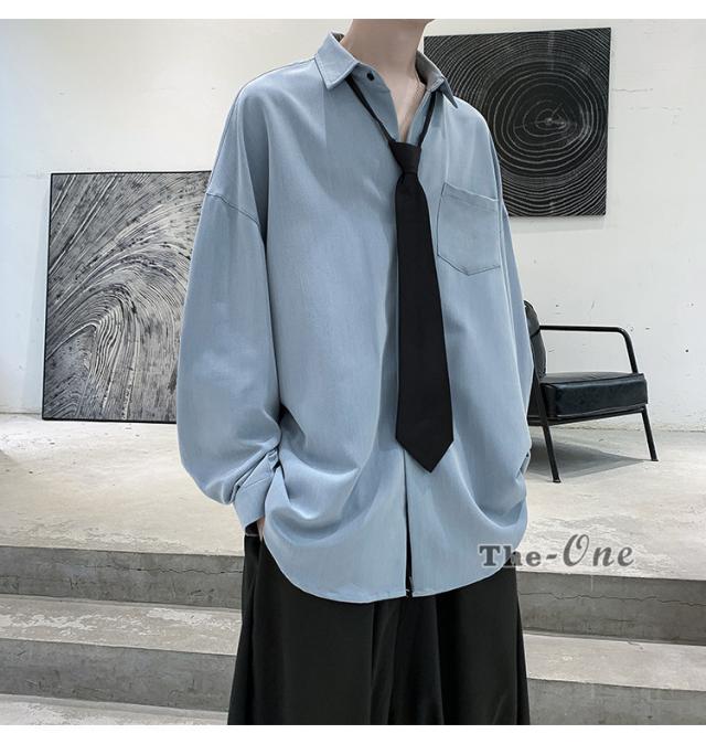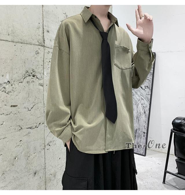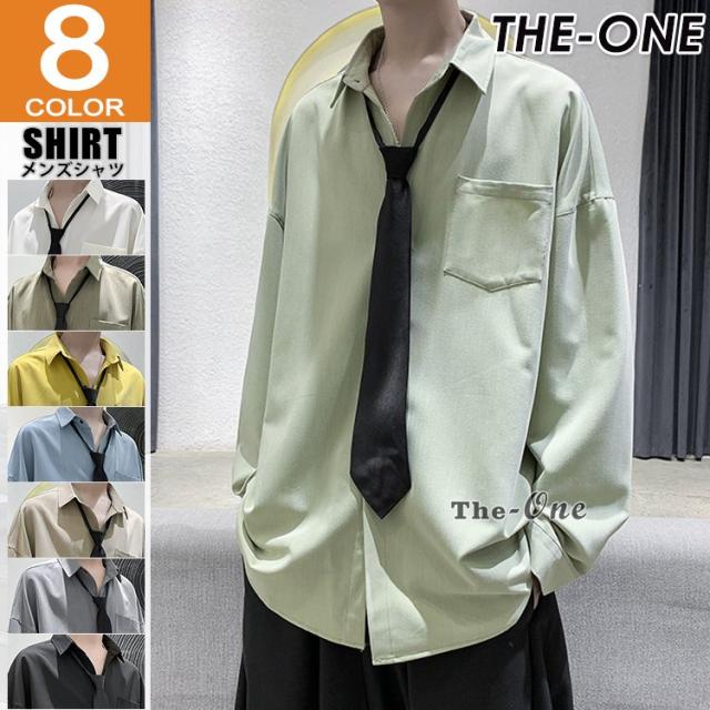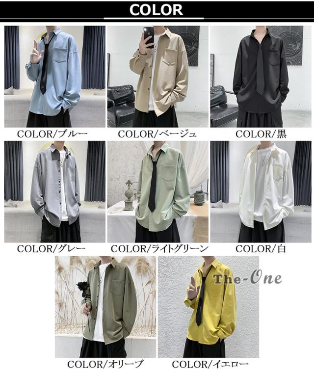 メンズ ネクタイ付き カジュアルシャツ カジュアルシャツ 無地 胸ポケット 長袖シャツ おしゃれ 長袖