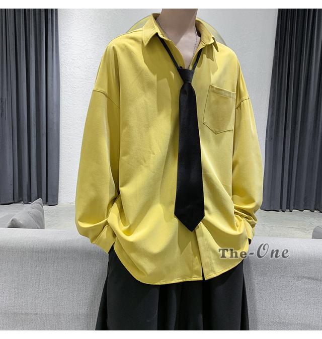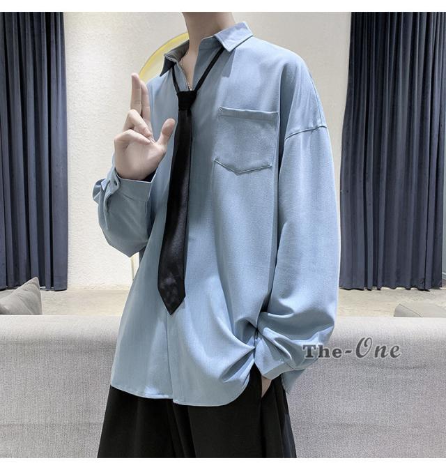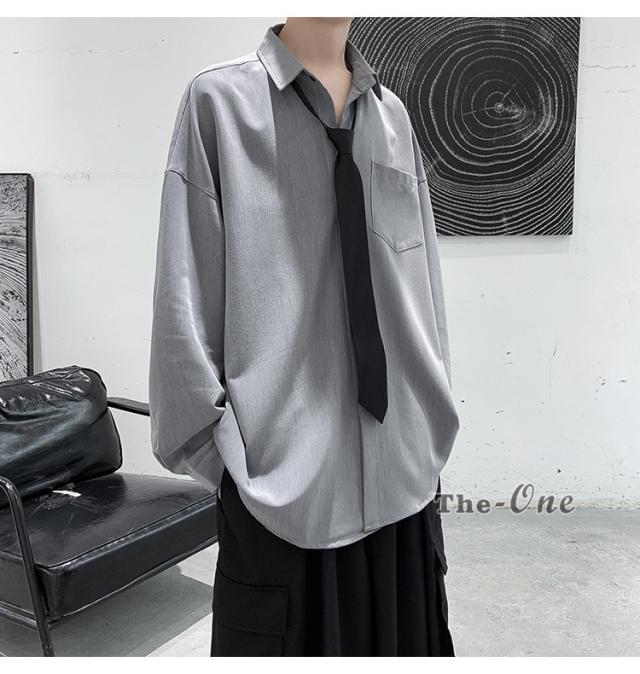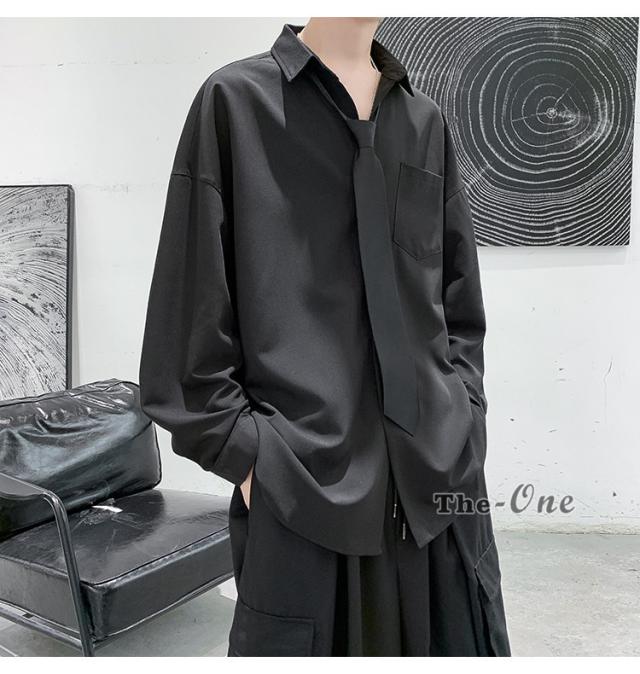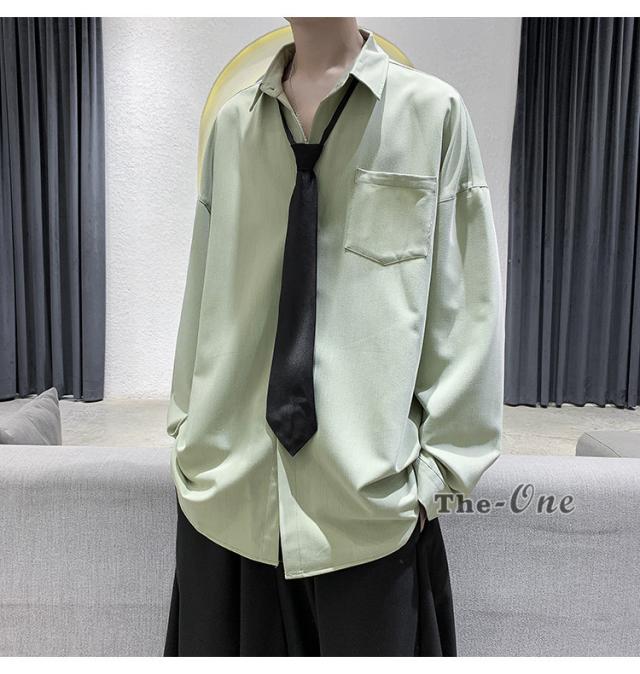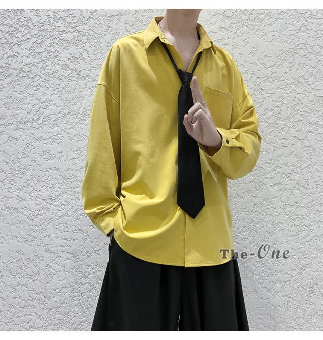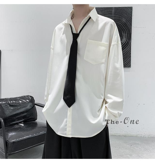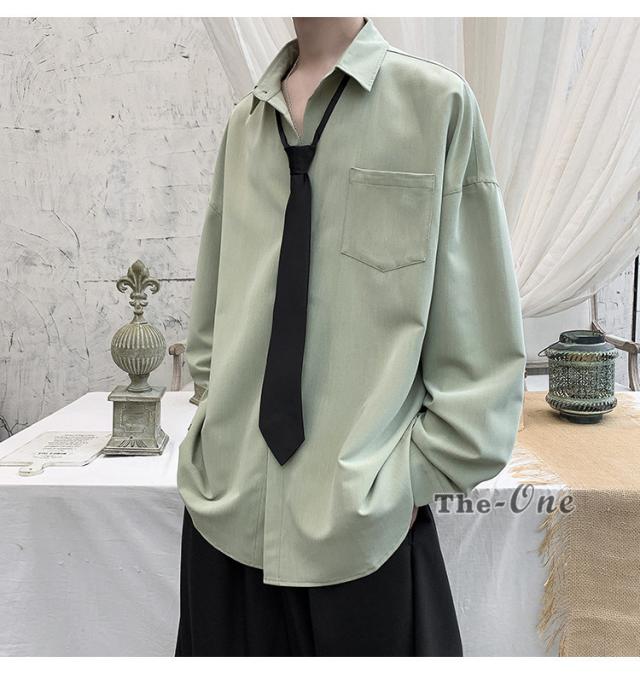 メンズ ネクタイ付き カジュアルシャツ カジュアルシャツ 無地 胸ポケット 長袖シャツ おしゃれ 長袖