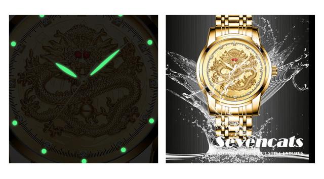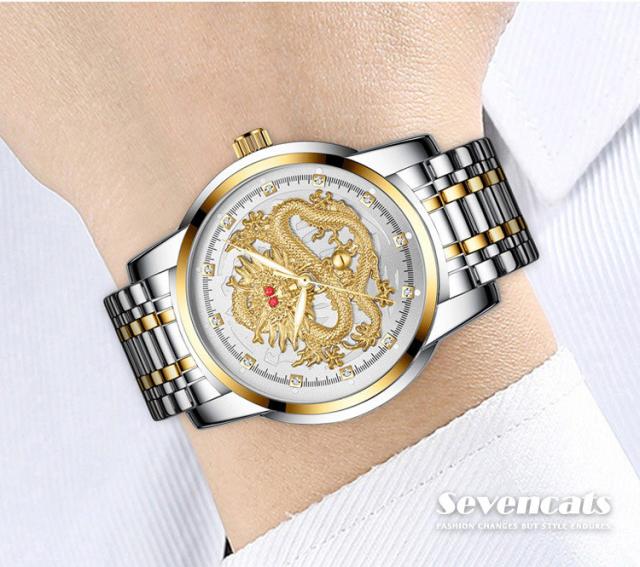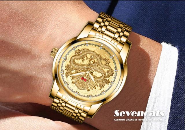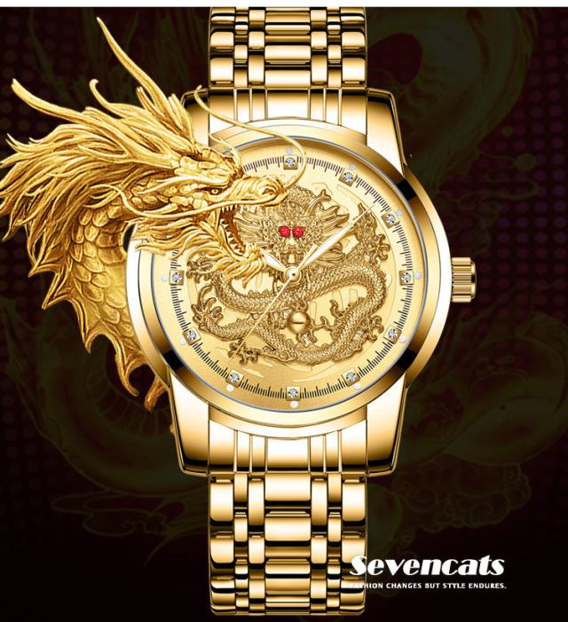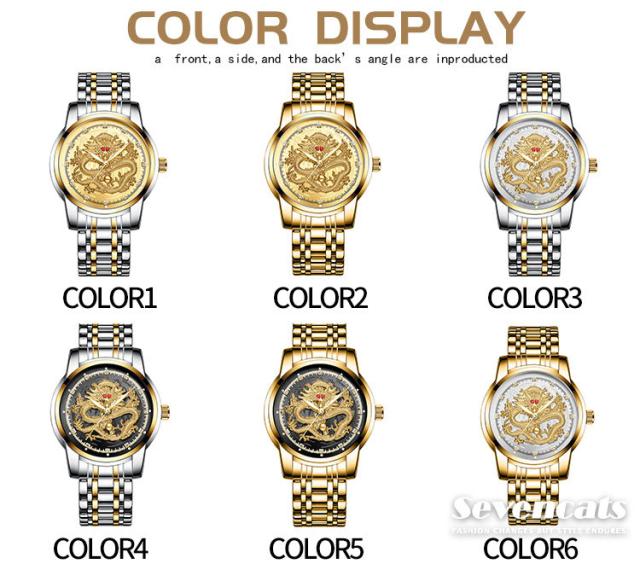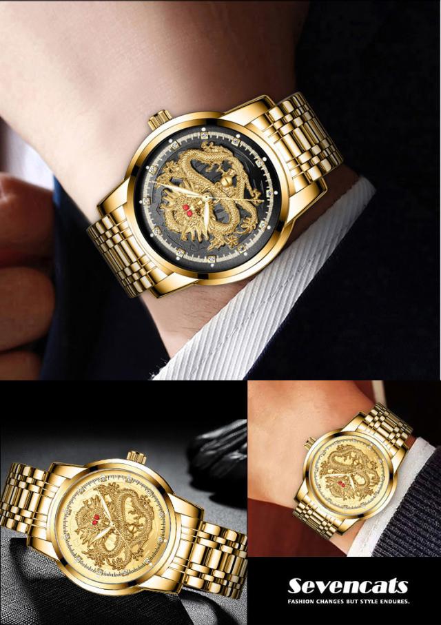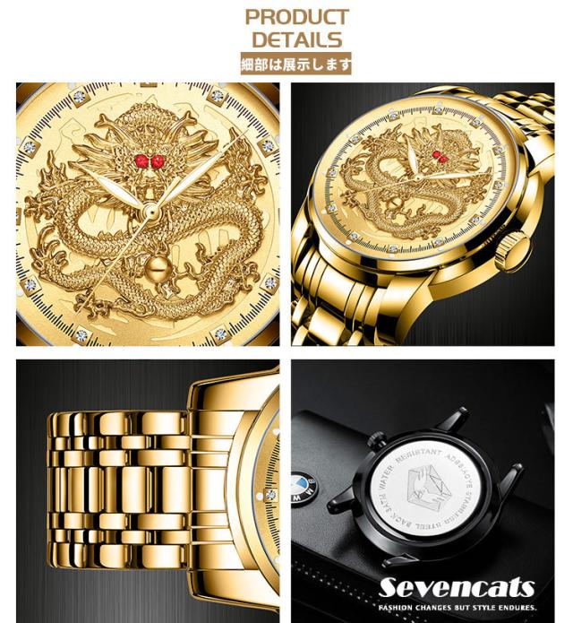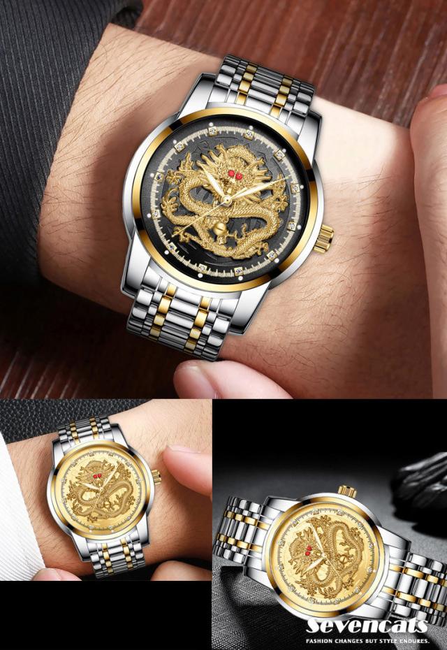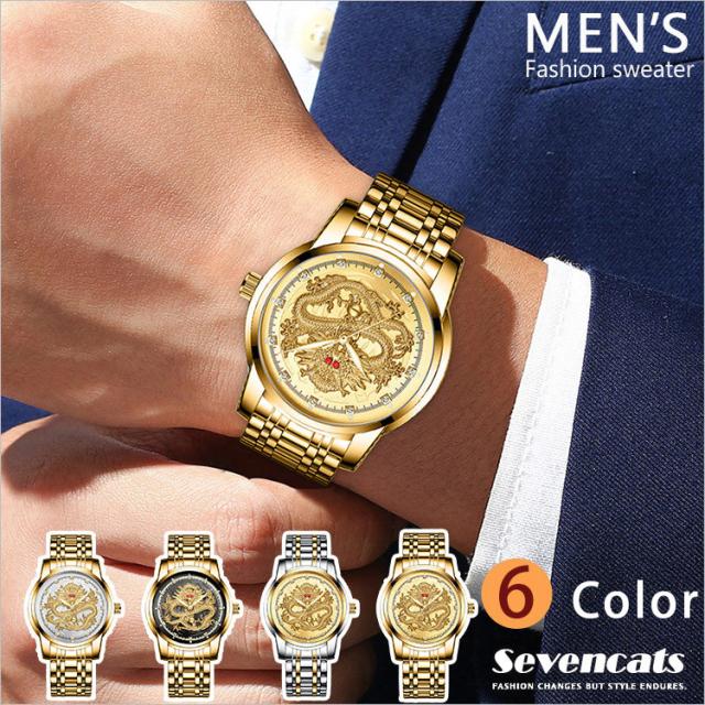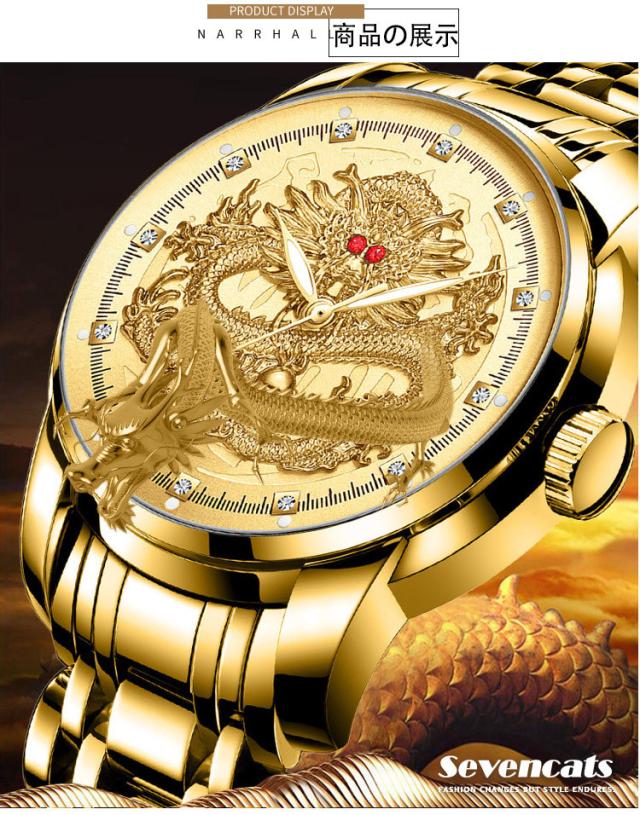ウォッチ メンズ ゴールデンドラゴン 腕時計 自動 ウォッチ 防水 紳士 ビジネス ウォッチ おしゃれ エンボス加工