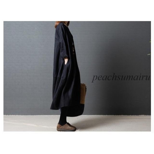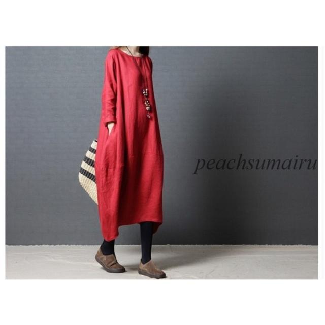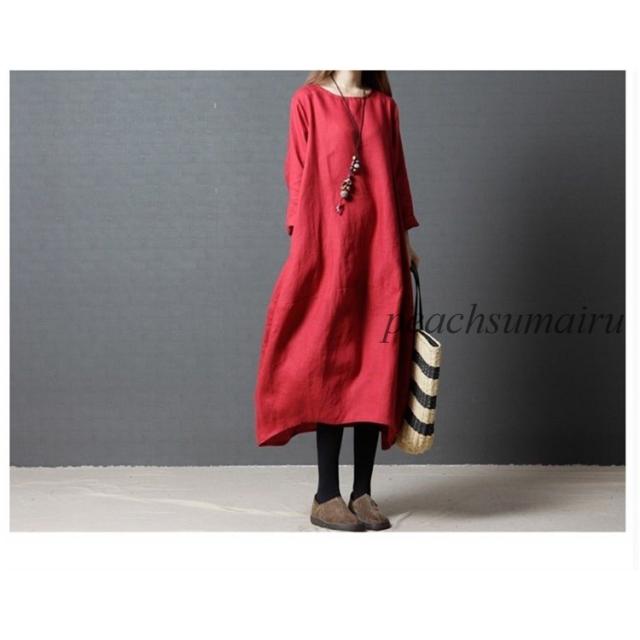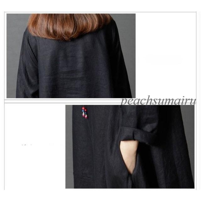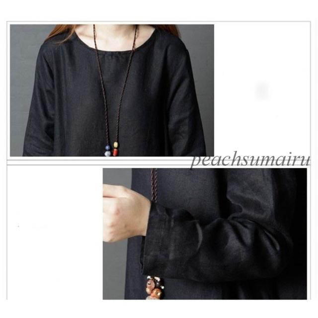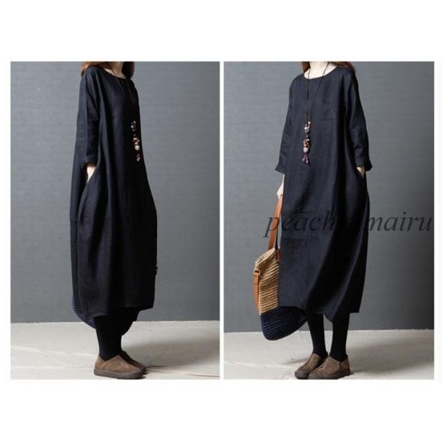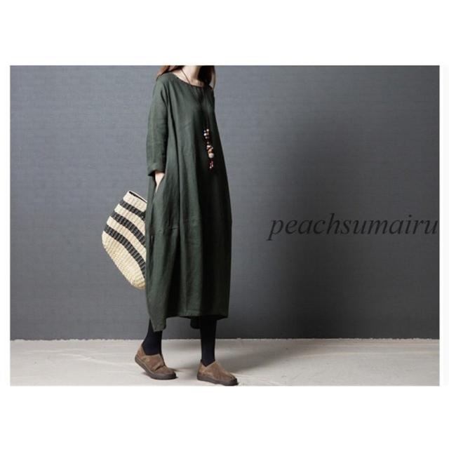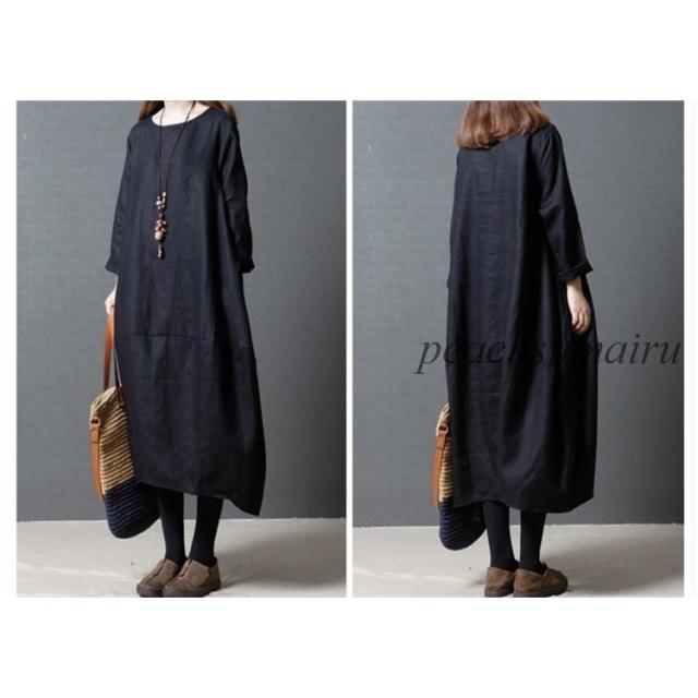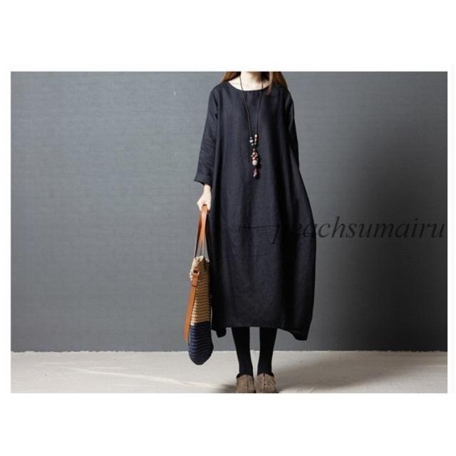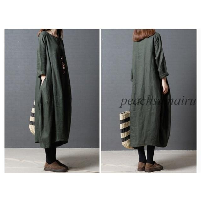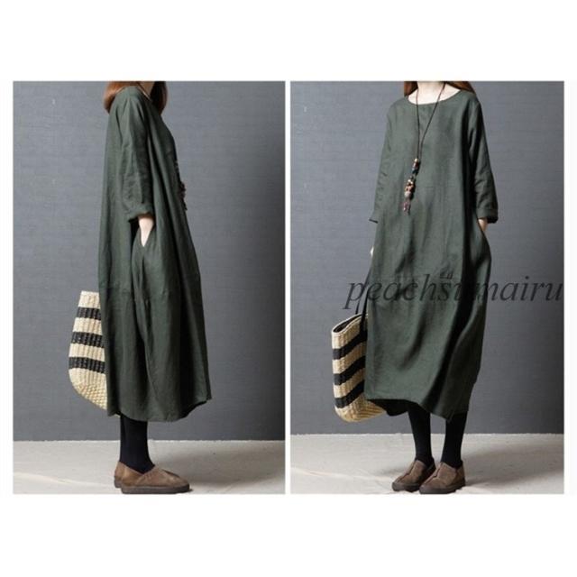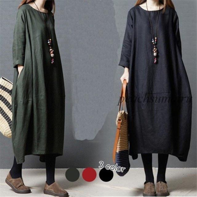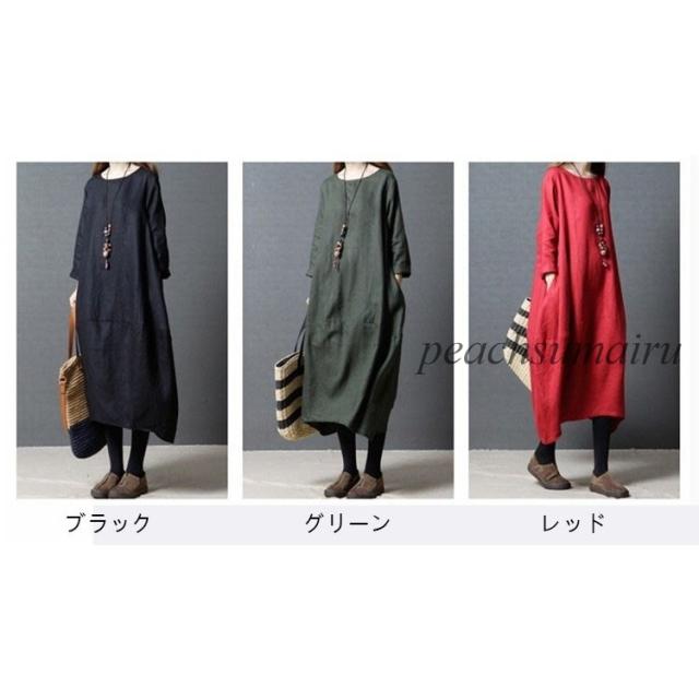 長袖 レディース ワンピース 秋 ロングワンピース コットンリネン 体型カバー 大きいサイズ ゆったり ワンピース