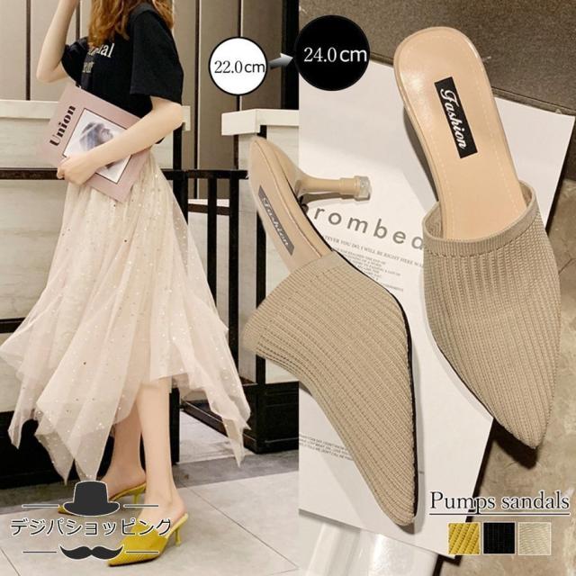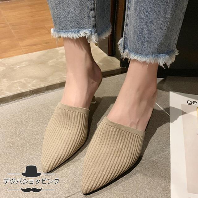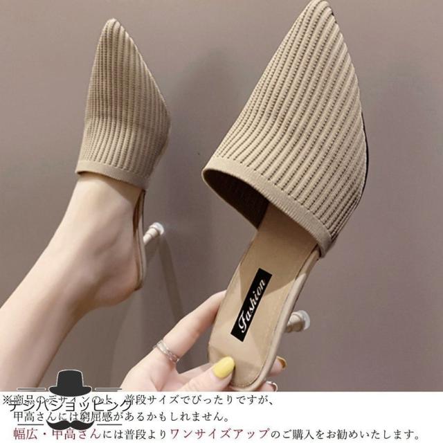 ミュールパンプスサンダル レディース ポインテッドトゥ 靴 ヒールサンダル サボサンダル かかとなしパンプス ミュールパンプスサンダル