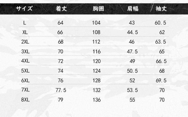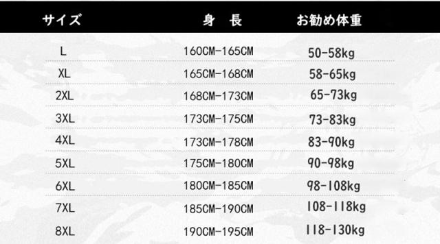 | サイズ | L XL 2XL 3XL 4XL 5XL 6XL 7XL 8XL |