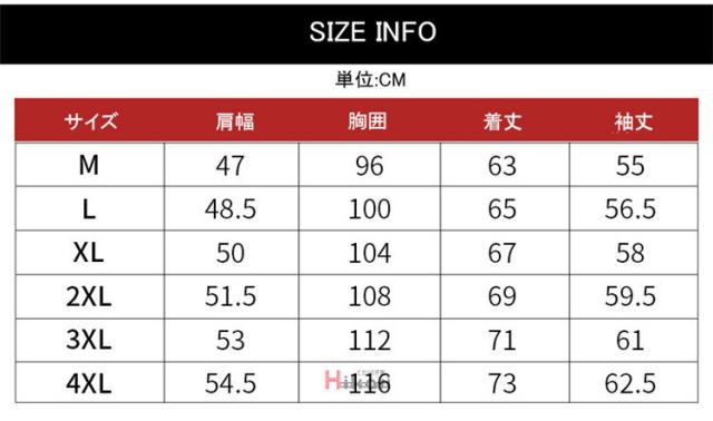| サイズ | M L XL 2XL 3XL 4XL |