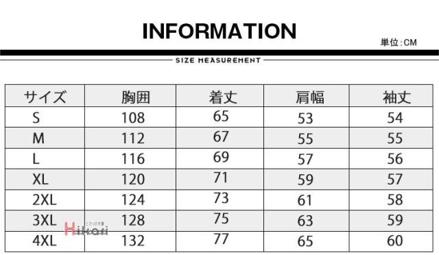 | サイズ | S M L XL 2XL 3XL 4XL |