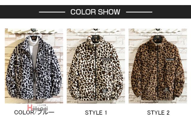 あったか ボアジャケット ブルゾン ボアジャケット ボアフリース レオパード柄 ヒョウ柄 メンズ