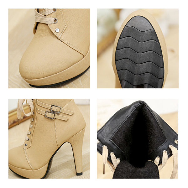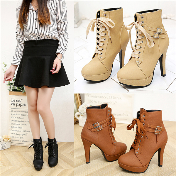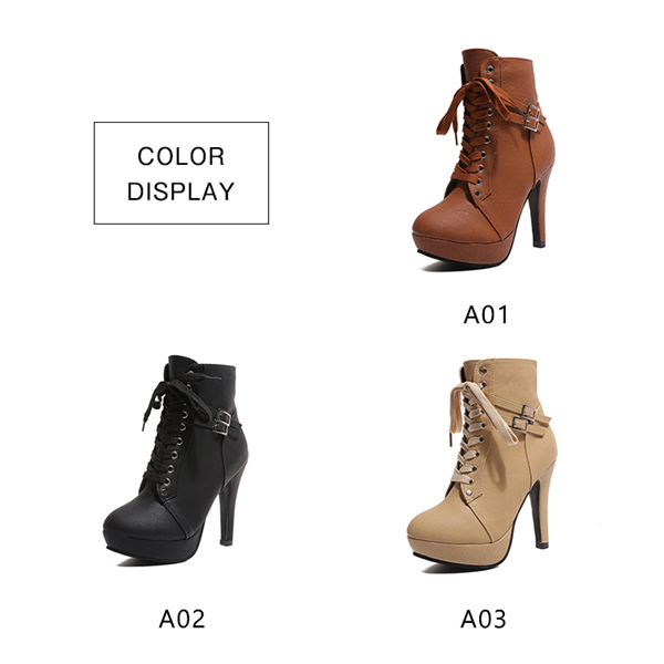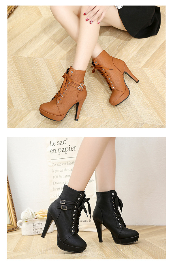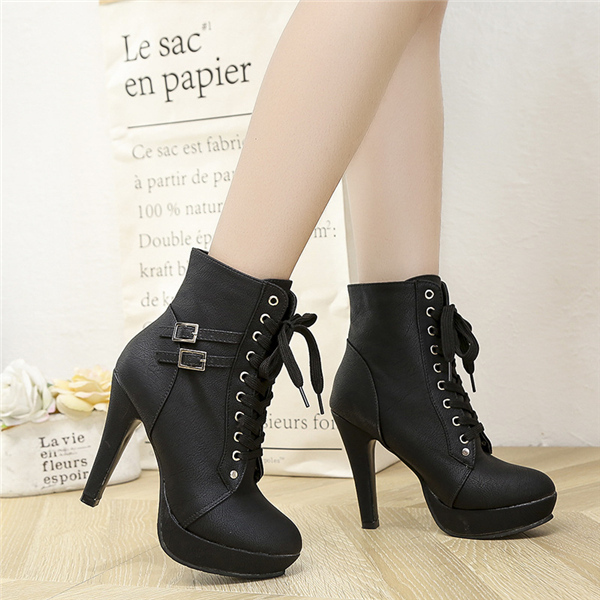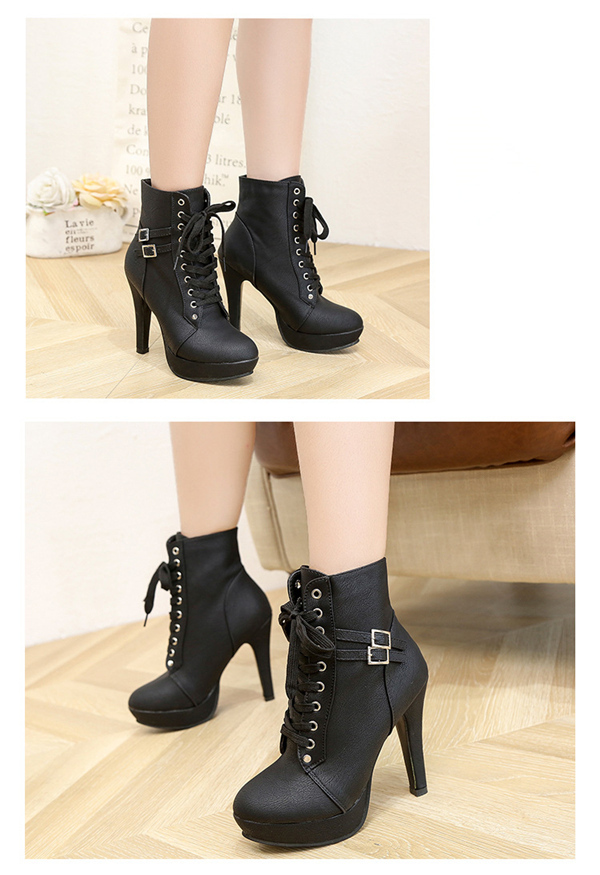 レースアップブーツ レディース ショートブーツ ヒール11cm 厚手 美脚ピンヒール 編み上げ 厚底 ミドルブーツ ブーティ 夜店 ショートブーツ