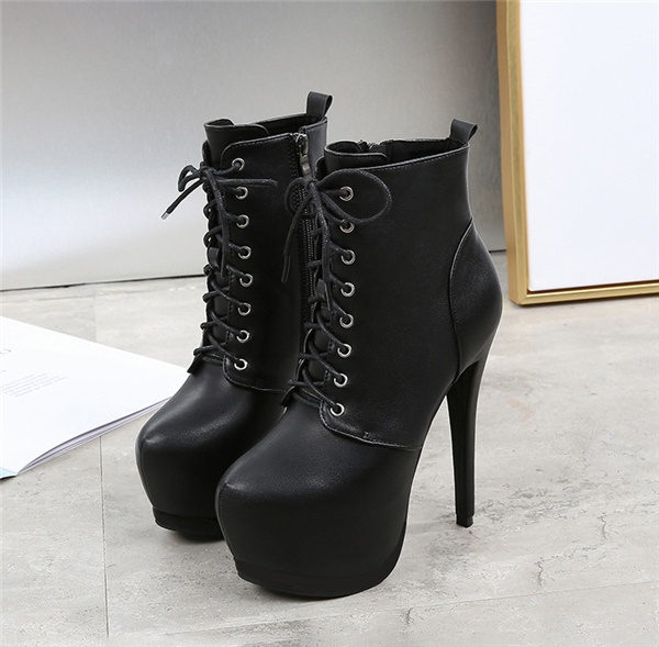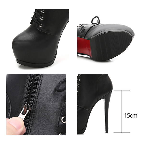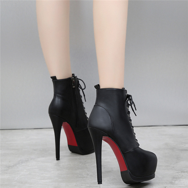 編み上げ レディース レースアップブーツ ショートブーツ 厚手 ヒール15cm ショートブーツ 美脚ピンヒール ミドルブーツ ブーティ 夜店 厚底