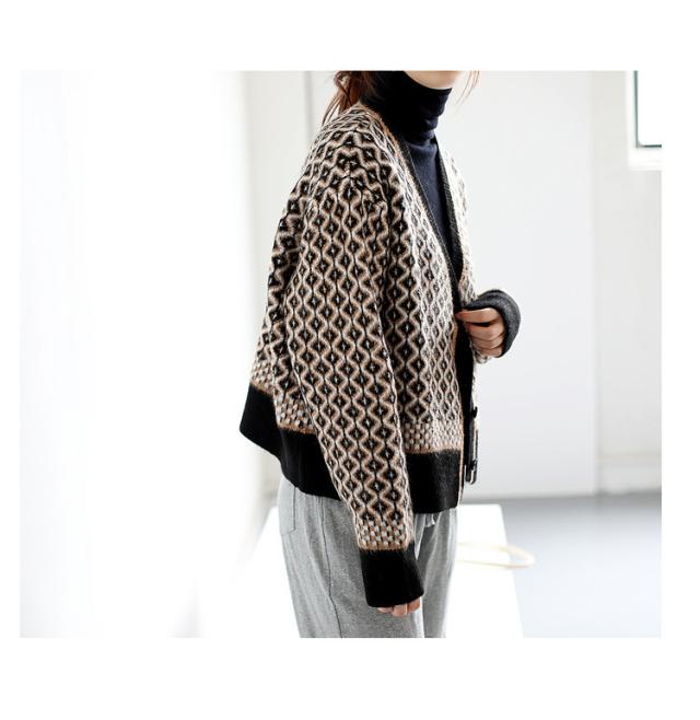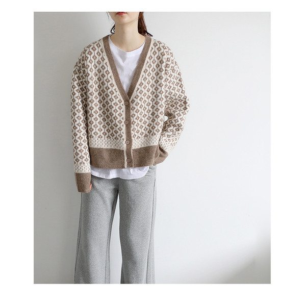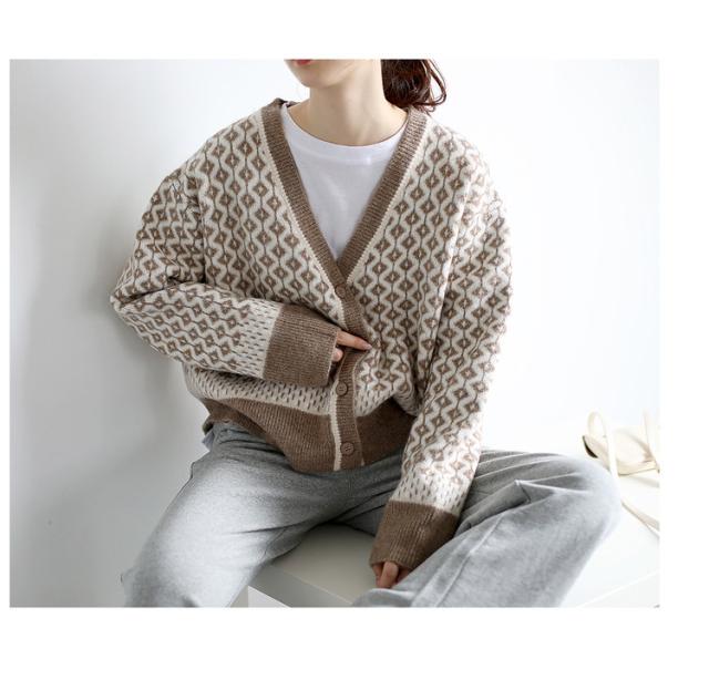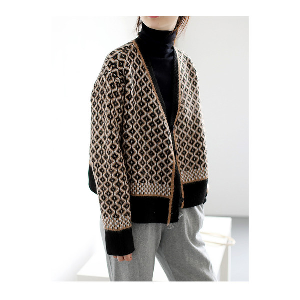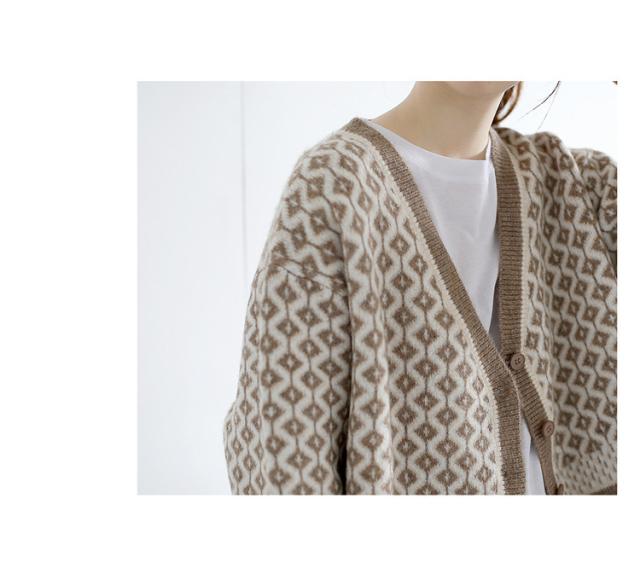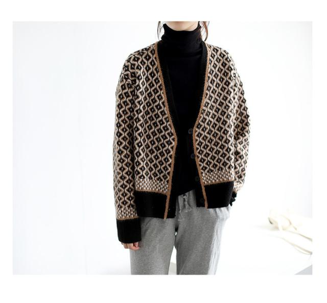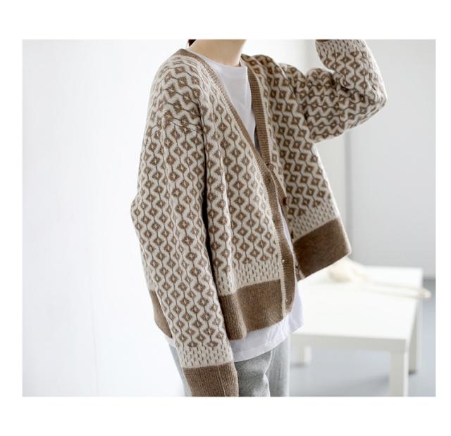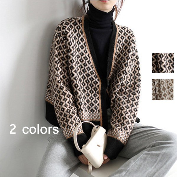 カーディガン カーディガン 幾何学柄 レディース 配色ダイス柄 長袖 ニットカーディガン アーガイル柄 ニットトップス カーディガン 羽織り 春秋冬 レディース