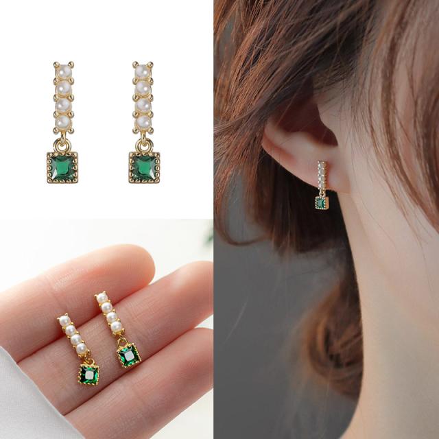 ピアス レディース パール 4連 エメラルド スクエア グリーン 揺れる スタッドピアス 小さめ 緑 18kコーティング ゴールド 金属アレルギー対応 つけっぱなし セカンドピアス おしゃれ 大人可愛い 上品 華奢 結婚式 パーティー プレゼント ギフト 送料無料