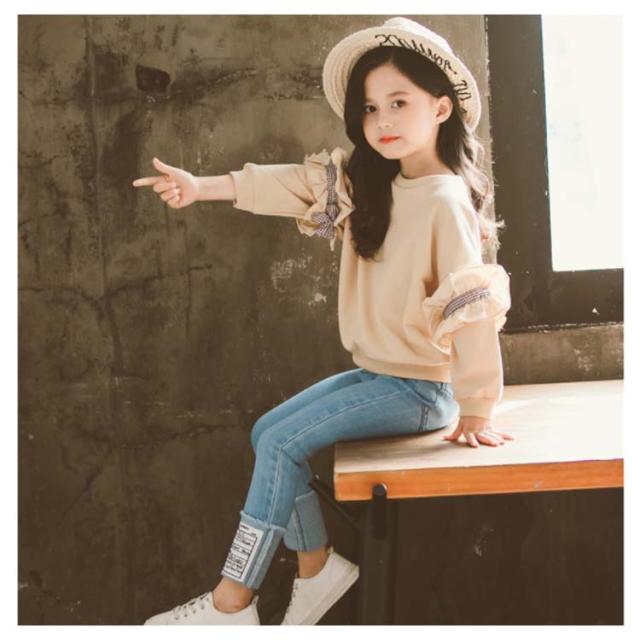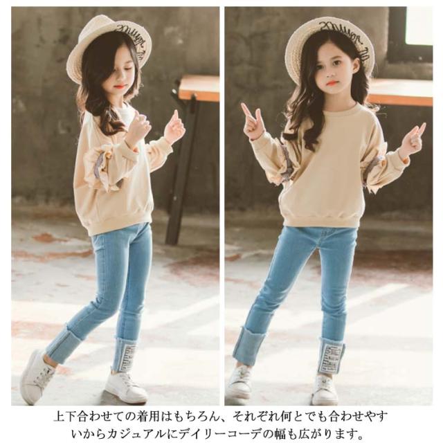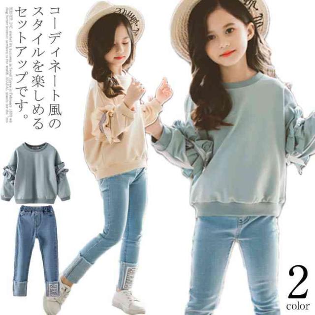 韓国キッズセットアップ 可愛い服キッズセットアップ パーカー 上下セット おしゃれ 女の子 ジーンズ フリル 110 120 130 140 可愛い服キッズセットアップ