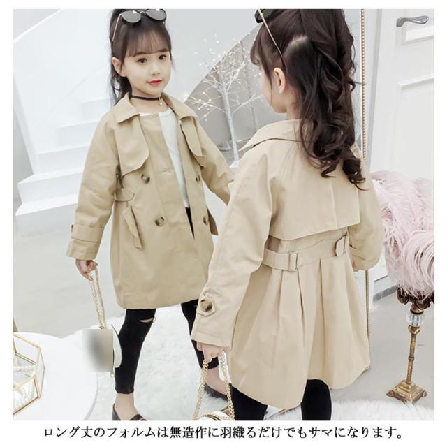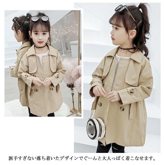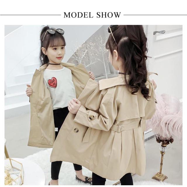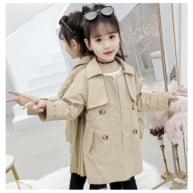 トレンチコート アウター 子供服 キッズミリタリージャケット 女の子 ロング丈コート 韓国服 無地 おしゃれ 110 120 130 140 キッズミリタリージャケット