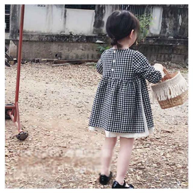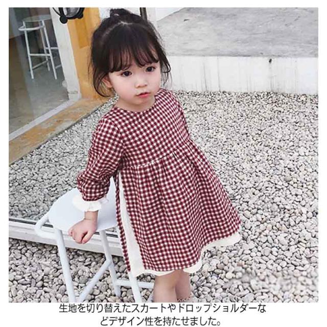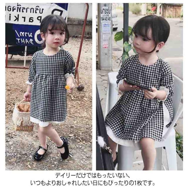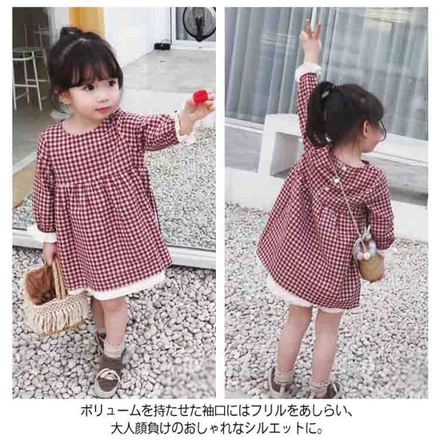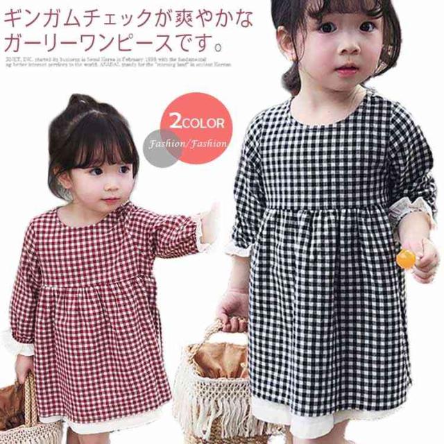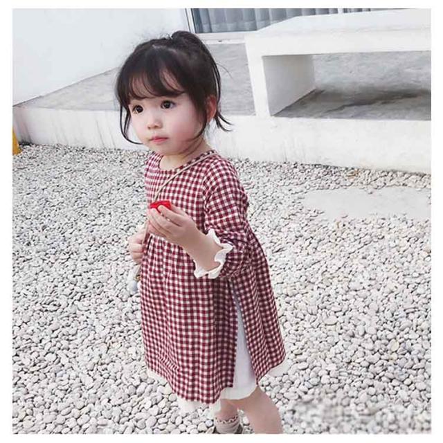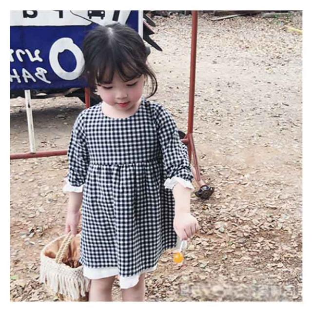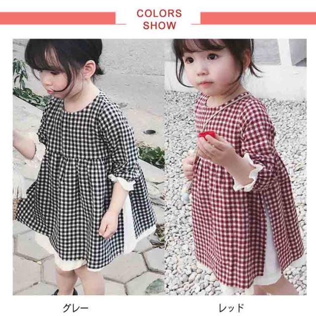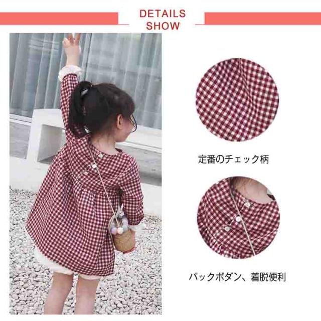 キッズ ワンピース キッズ レイヤード風ワンピース 韓国服 キッズ チェック 女の子 ワンピース シャツワンピース