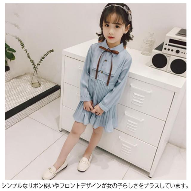 長袖 ワンピース ガーリーワンピース キッズ シャツワンピース 韓国服 ポロ襟 女の子 キッズ キッズ ワンピース 無地 100 110 120 無地