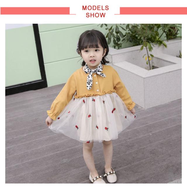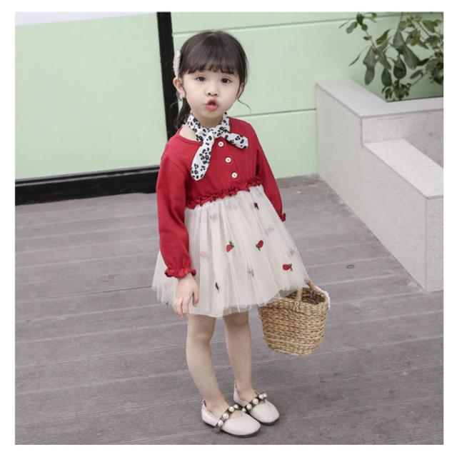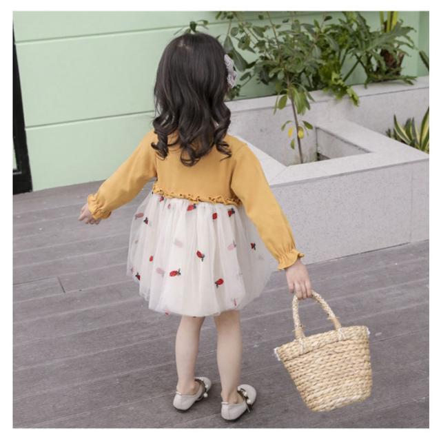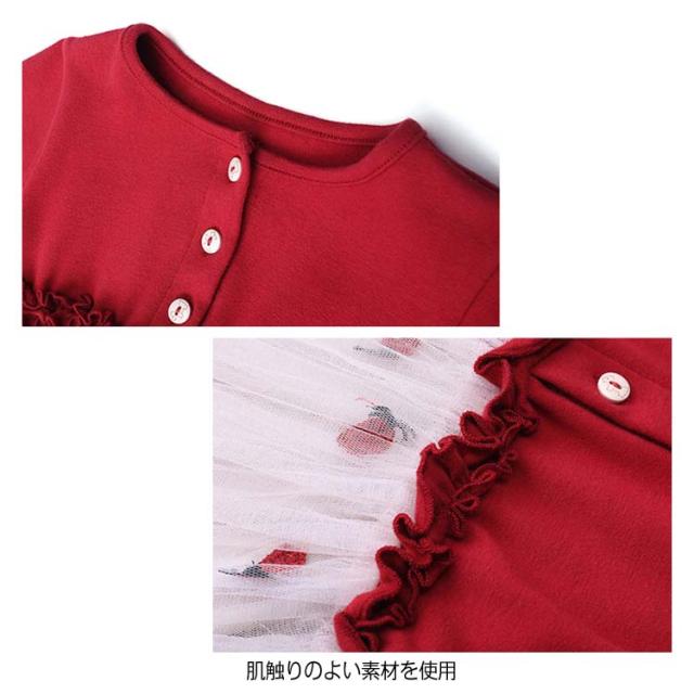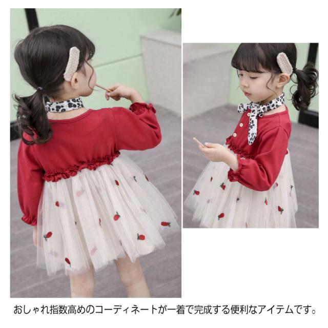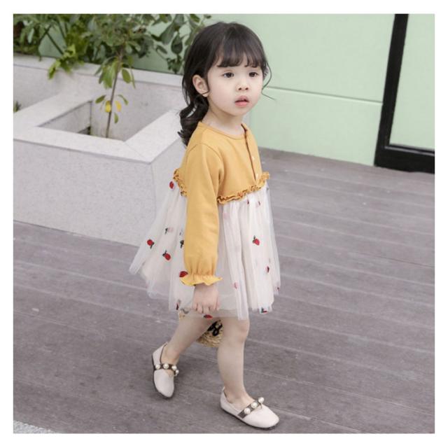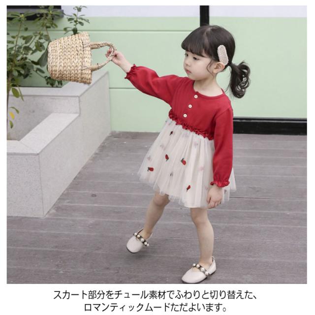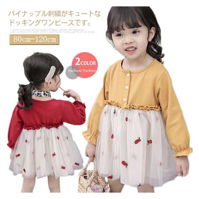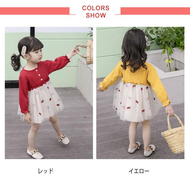 おしゃれ チュールスカートワンピース ドッキングワンピース 韓国服 カラフルチュール 80 ワンピース 長袖 チュールスカートワンピース 90 100 110 120 キッズワンピース