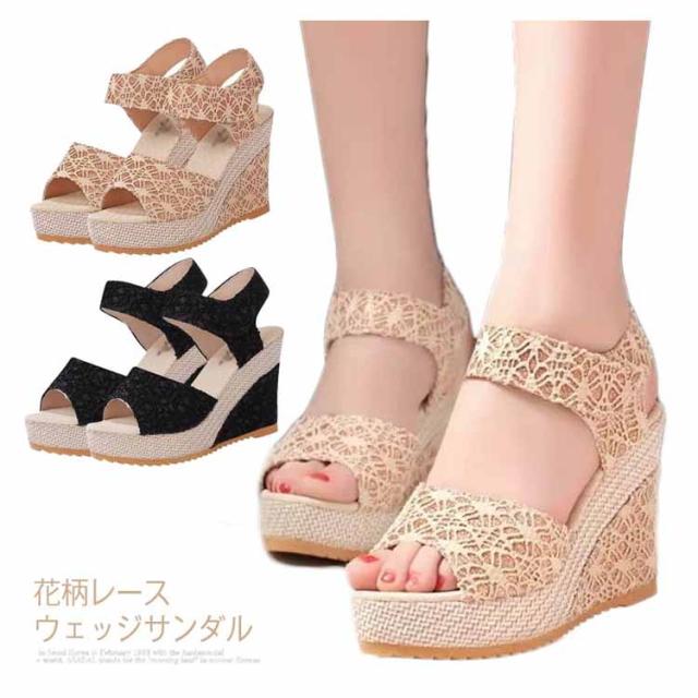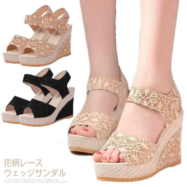 ウェッジサンダル 厚底サンダル 歩きやすい レディース レースウェッジソール サンダル サマーサンダル シューズ サンダル