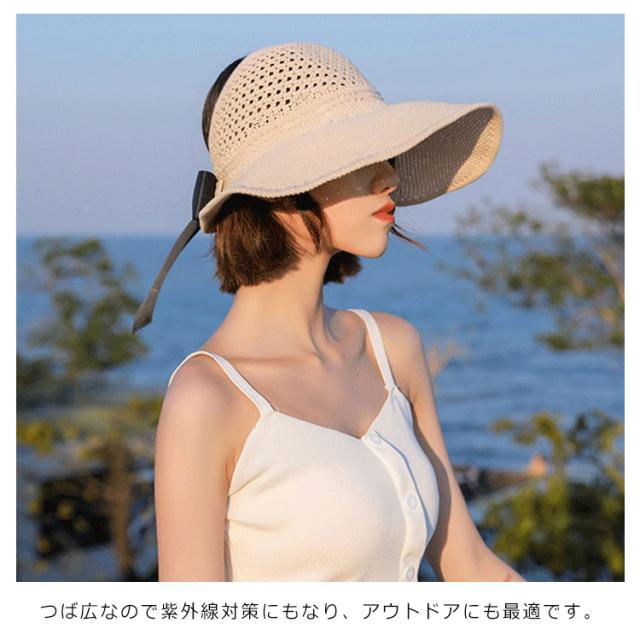 麦わら リボン付き 折りたたみ つば広ハット ストローハット 麦わら サファリハット レディース ハット UV 帽子 日よけ リボン付き ハット UVカット 帽子 紫外線 帽子 つば広 帽子 日よけ 麦わら帽子