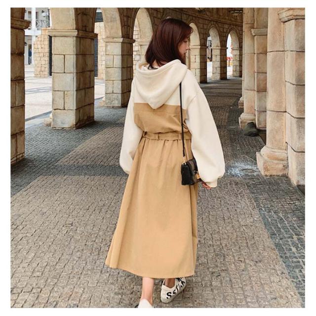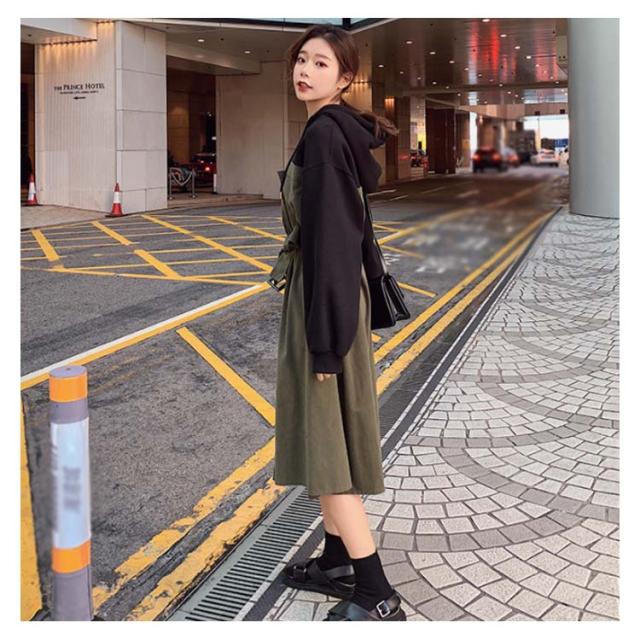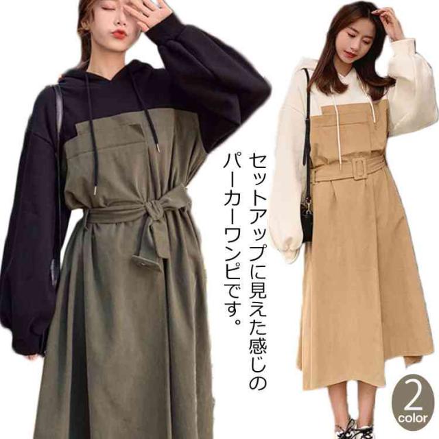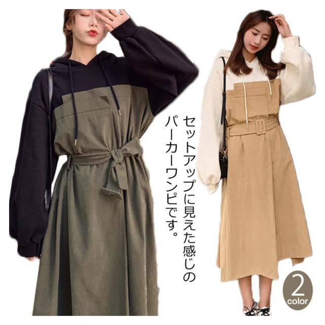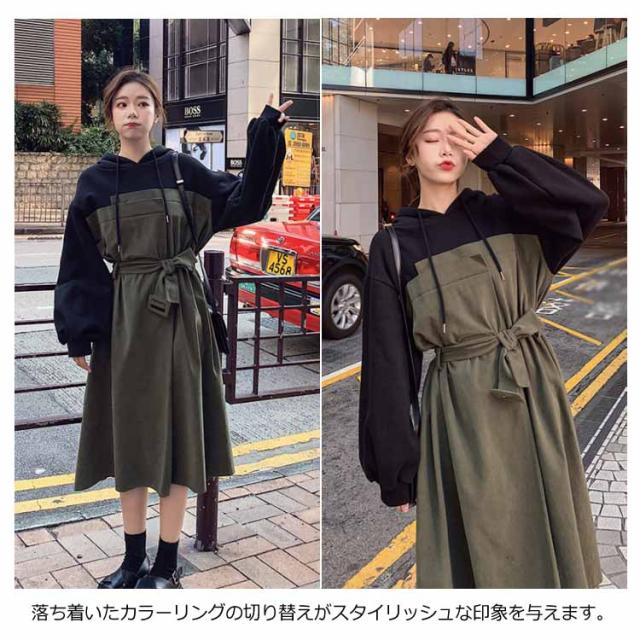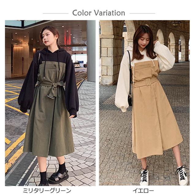 ハーフジップパーカーワンピース ウエスト レディース ハーフジップパーカーワンピース 配色 ショート丈ワンピース 絞り フード付き カジュアル ワンピース