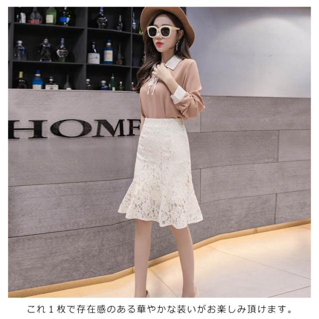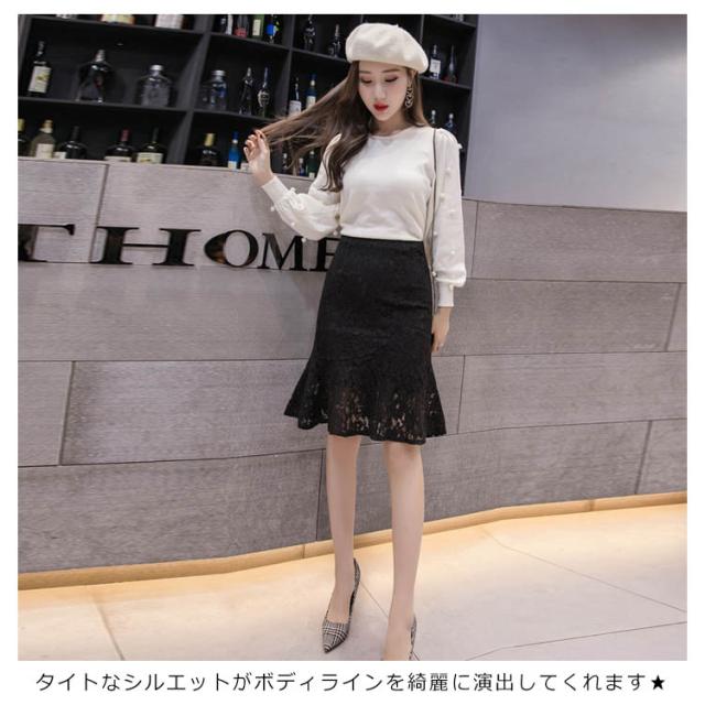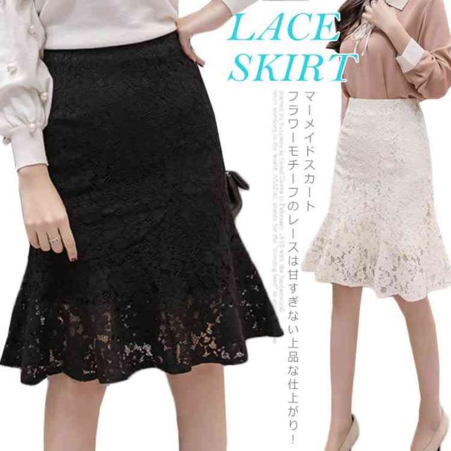 スカート 総レース マーメイドライン タイトスカート ペンシルスカート ヒザ丈 総レース レース タイトスカート レーススカート 花柄 レース スカート タイト 美脚 セクシー 裾フレア スカート レディース