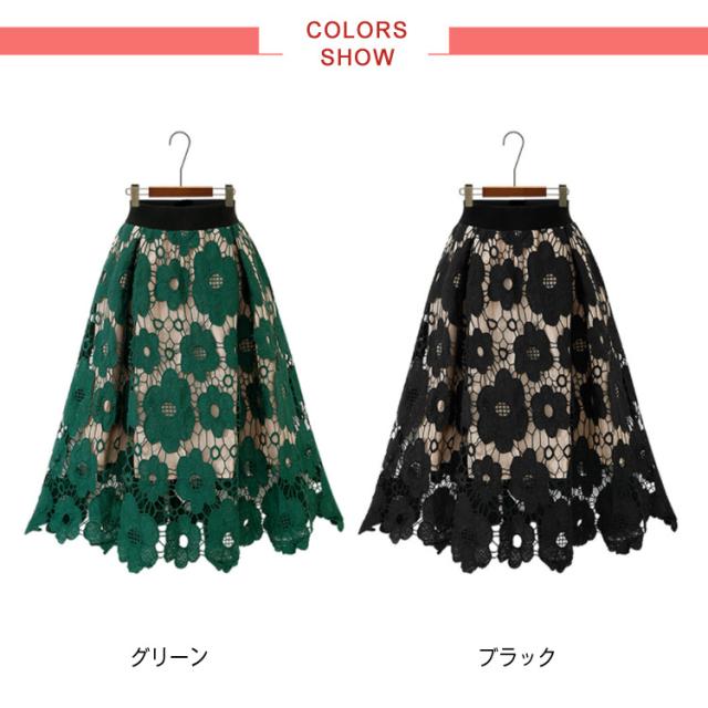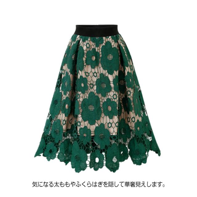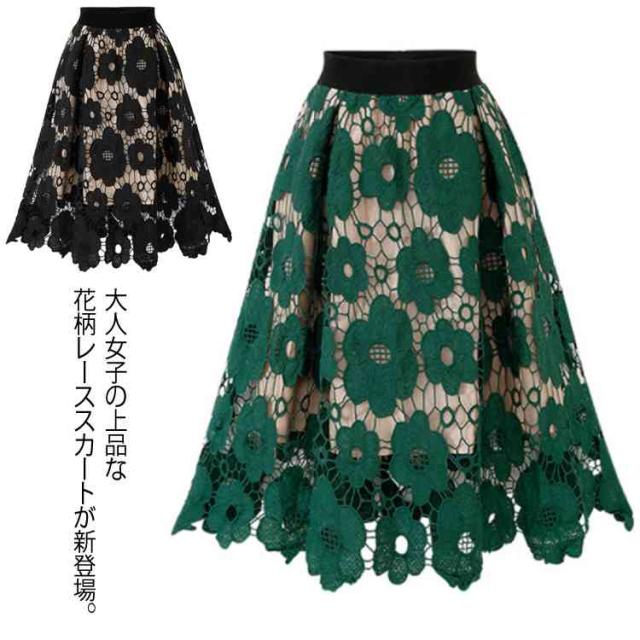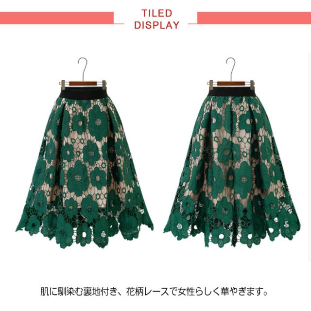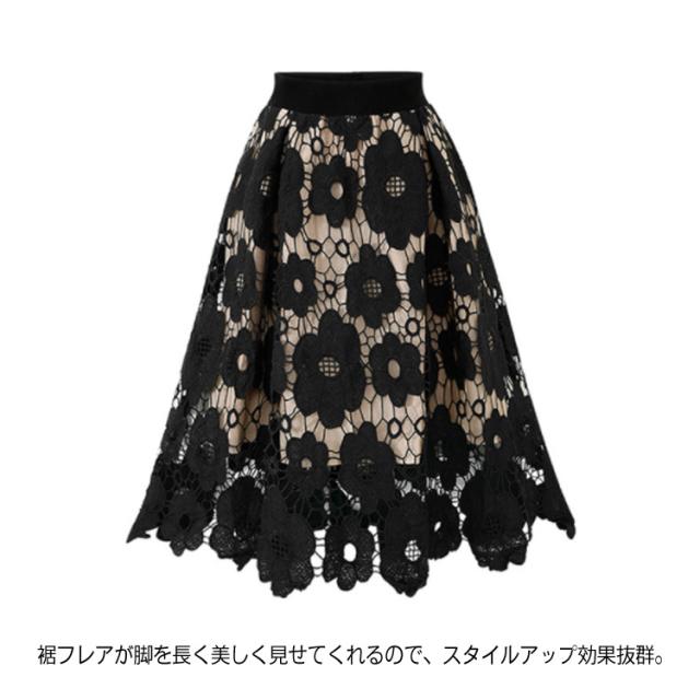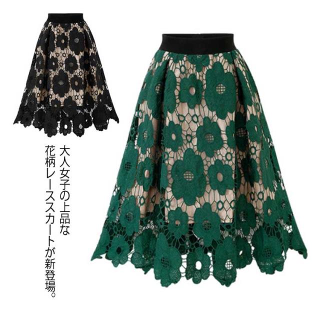 スカート フレアスカート レース エレガント スカート 花柄レース 新作 美脚 ミモレ丈 レディース 花柄 ロングスカート 大人気 ボトムス