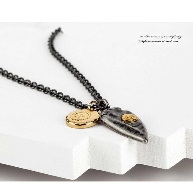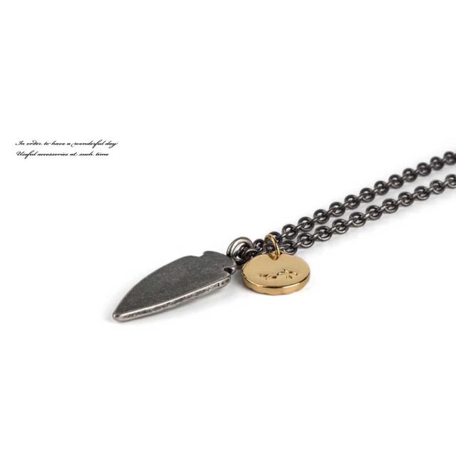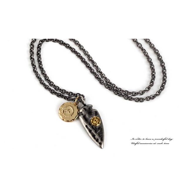 | サイズについての説明 | 矢じりデザインのトップにサンイーグルとチャームにもサンイーグル! アメカジデザインに相性抜群のアローヘッドトップ。 チャームもゴールドのサンイーグルチャーム。 メタルブラックのカラーにゴールドがアクセントのカラー配色が抜群です。 渋みさえも感じるカラーでアクセントに最適。 ステンレスを使用している為サビにも強く強度もバッチリ。 スタイルを問わずに使えるヘビーローテーション間違い無しの大活躍アイテムです。 ●大きさ トップ3.4cm×1.5cm チャーム1.5cm チェーン65cm ●注意事項 モニターの都合上、掲載写真と実際の色が異なる場合がございます。 |