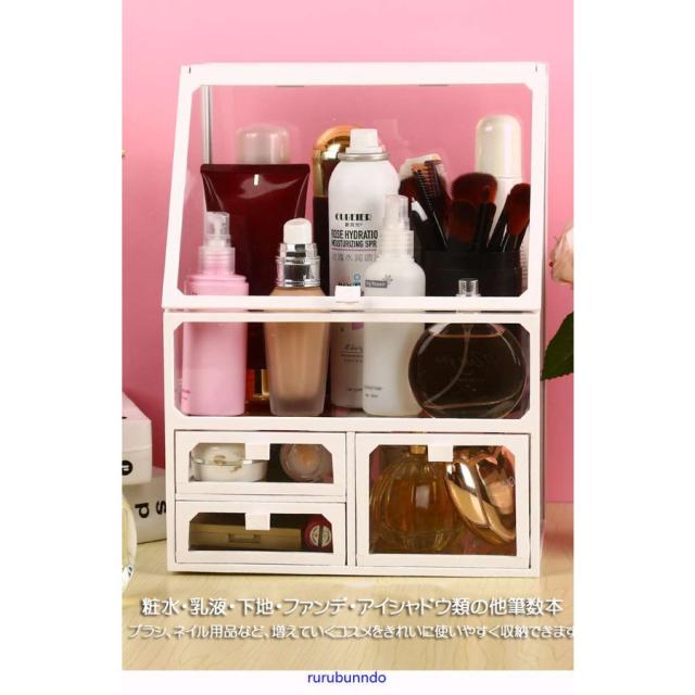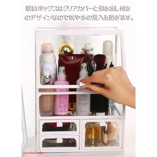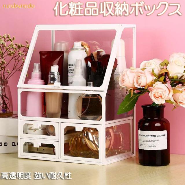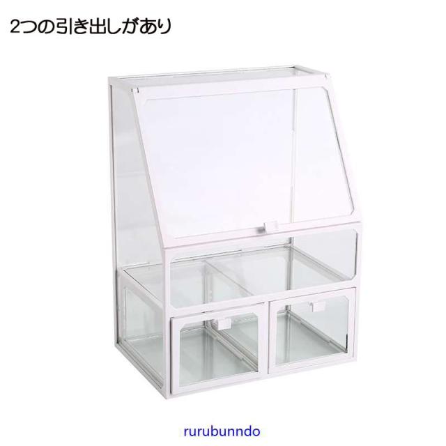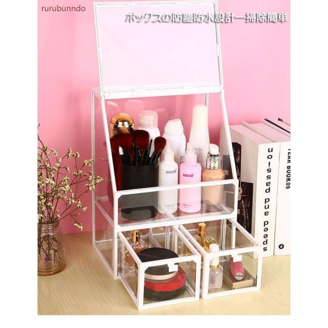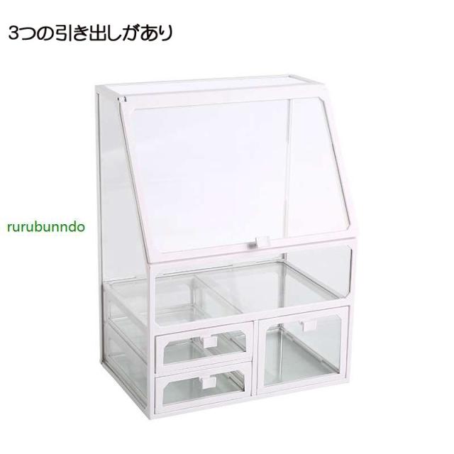 メイクケース 収納ボックス防塵卓上大容量透明アクリル ガラスコスメ メイクケース