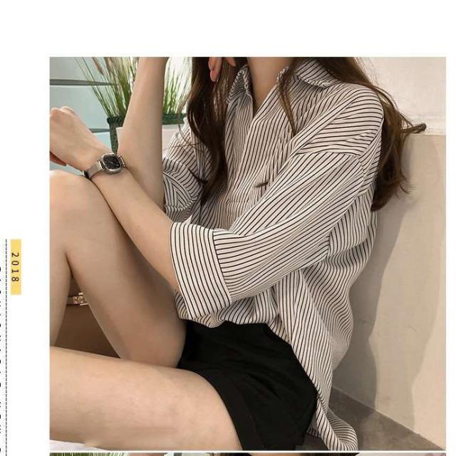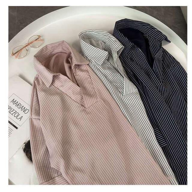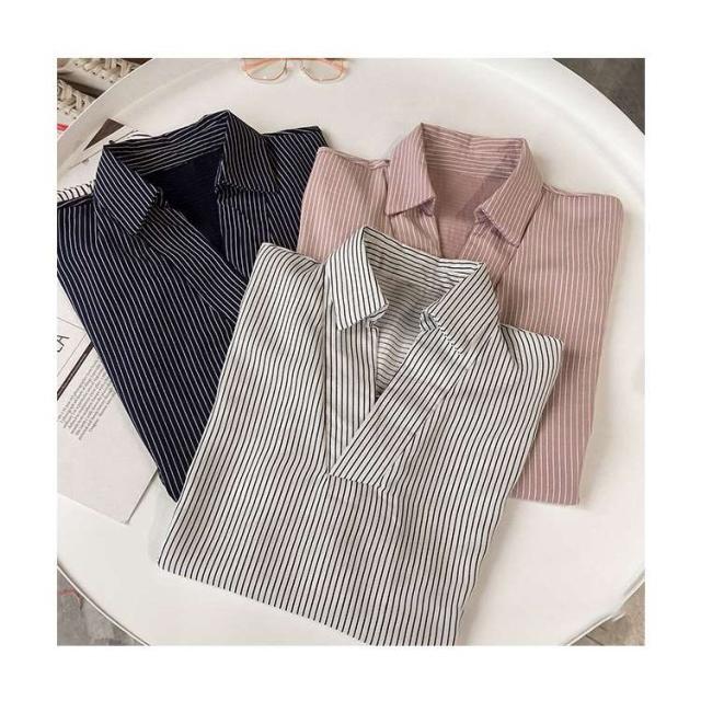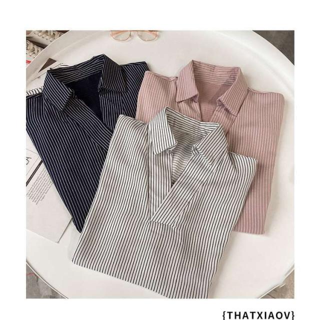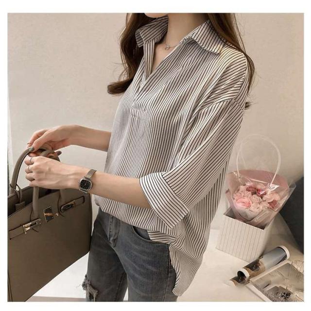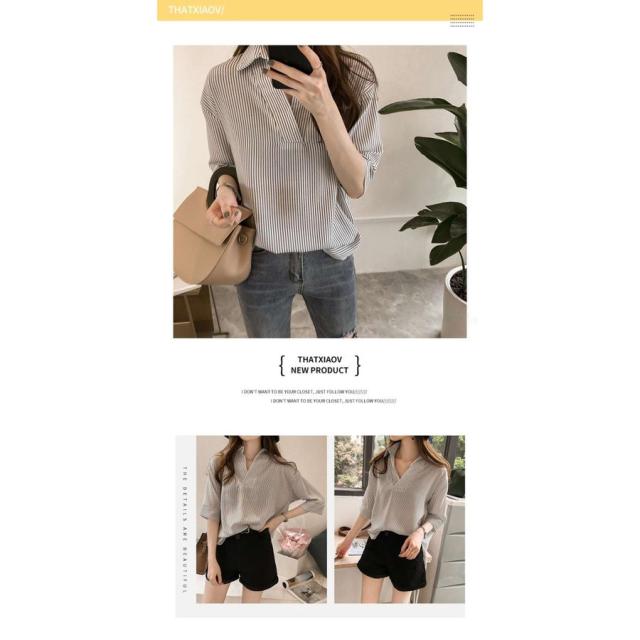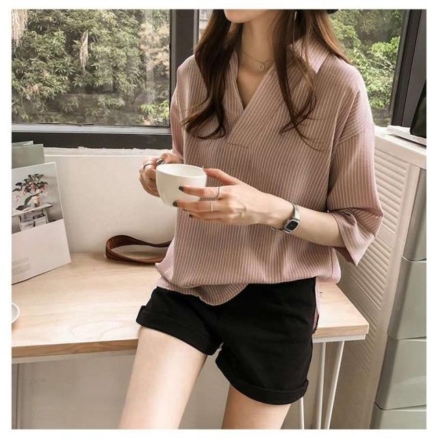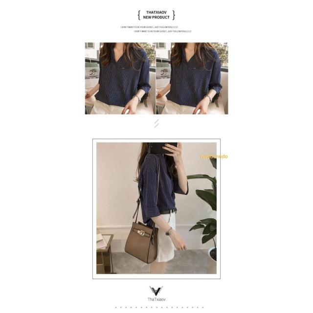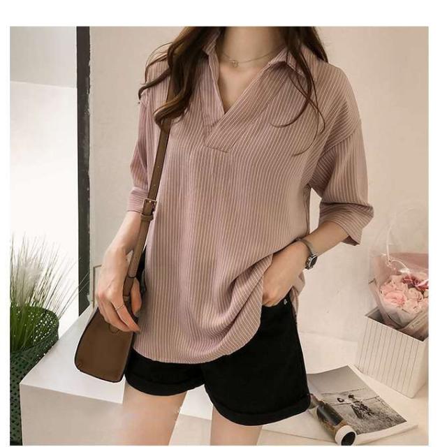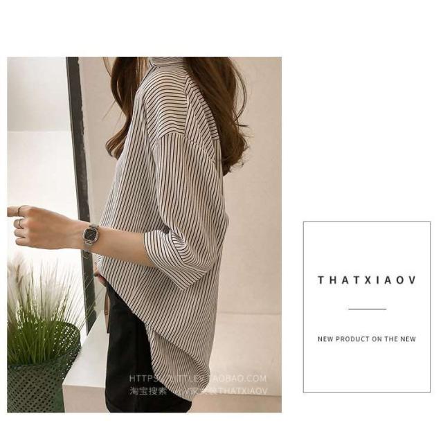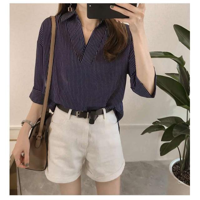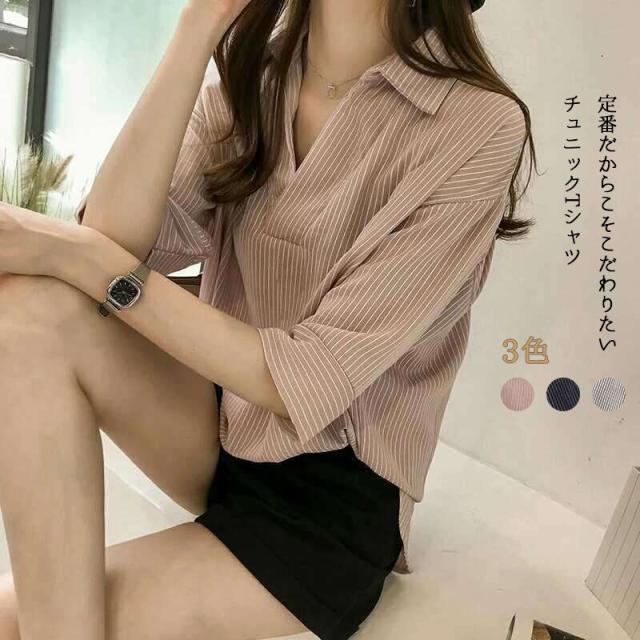 夏服新作韓国ゆったりレディース シャツ 袖 ストライプ トップス 夏服新作韓国ゆったりレディース 異素材 シャツ七分袖楽ちんオルチャンスタイルファッション上品 切り替え