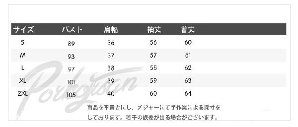 | サイズ | S M L XL 2XL |