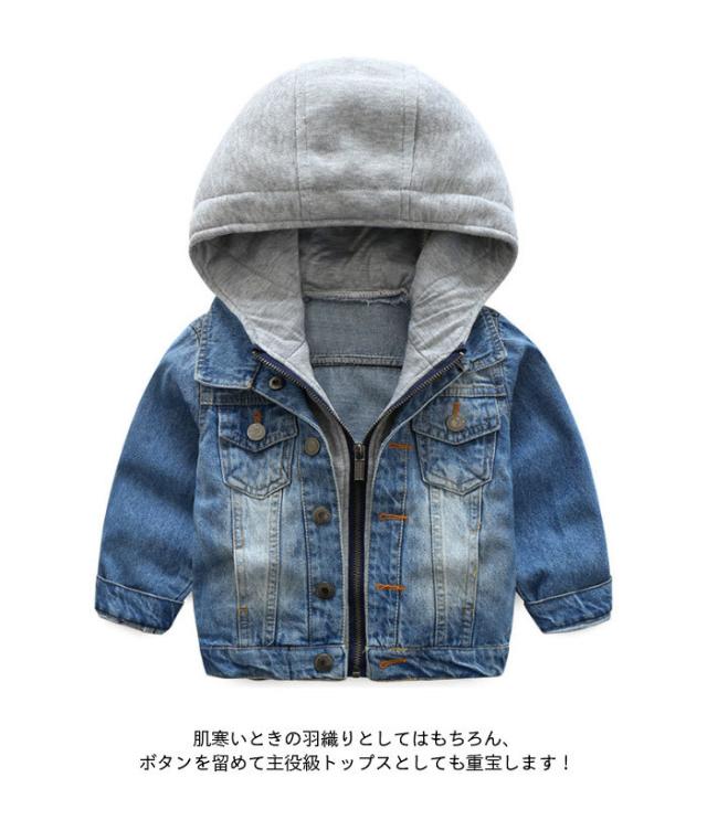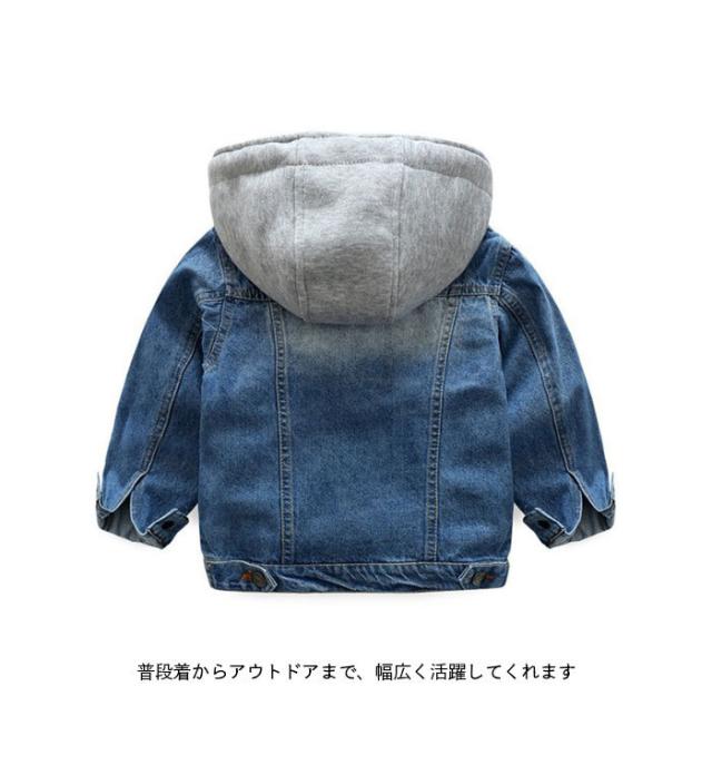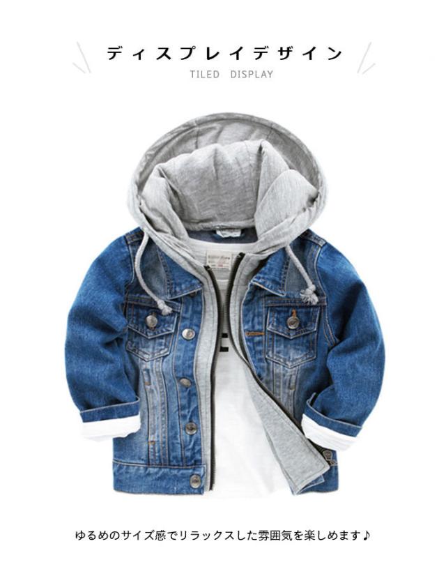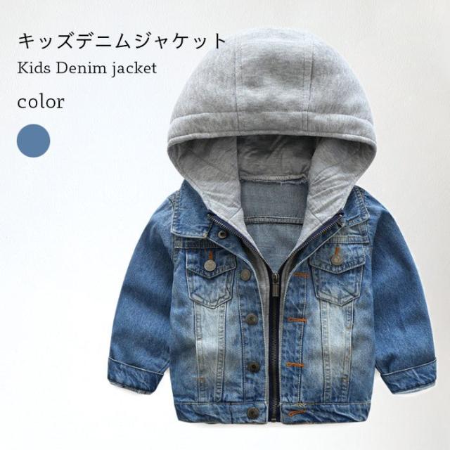 かわいい ジュニア 長袖 男の子 デニムジャケット 140 フード付き キッズ 春 おしゃれ シンプル ボーイズ 男児 ゆったり 子供服 デニムジャケット