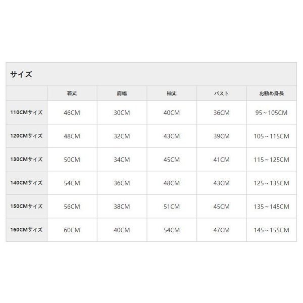 | サイズ | 110cm 120cm 130cm 140cm 150cm 160cm |