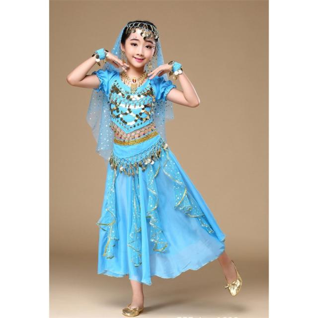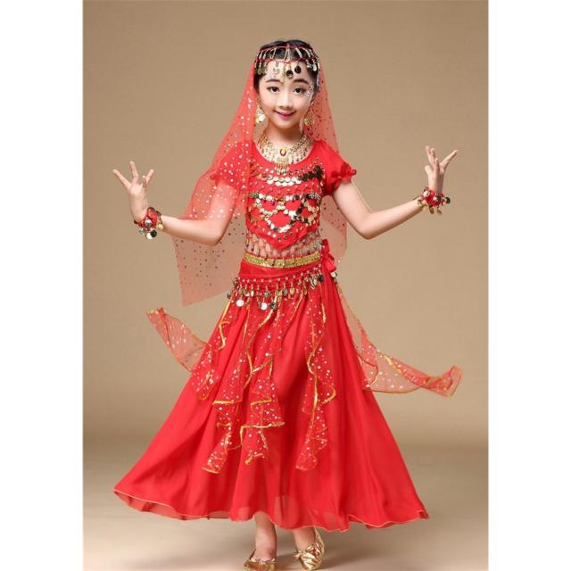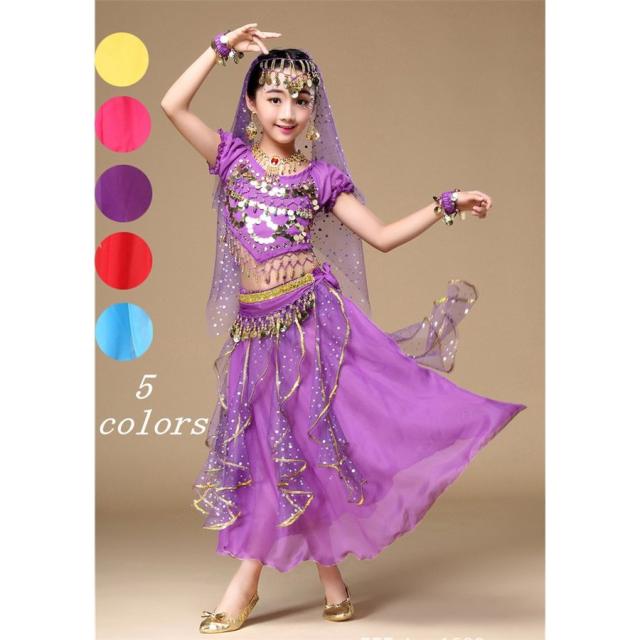 ベリーダンス 衣装 セット キッズ 4点ゼット子供用豪華ステージ衣装 出演 舞踊衣装 アラビア アラブ 衣装 アラビア衣装 パーティー衣装 イベント