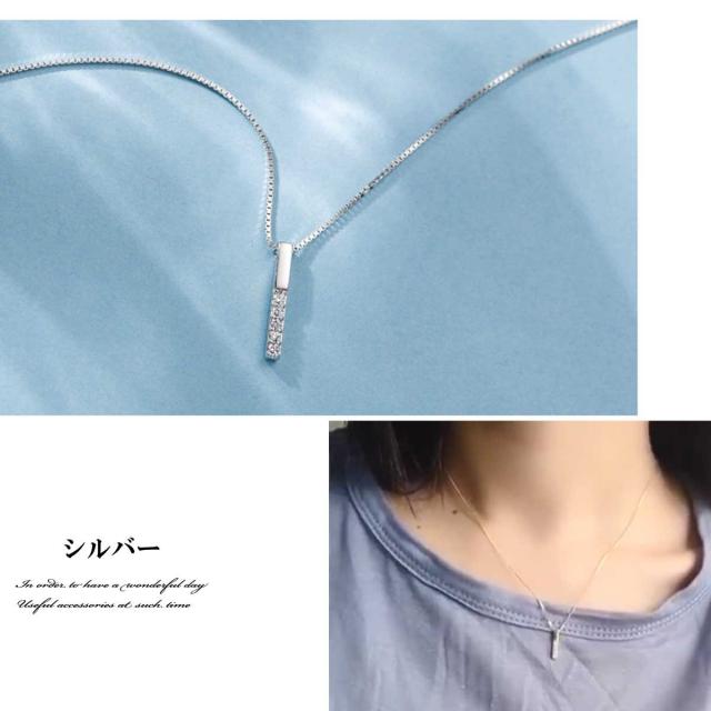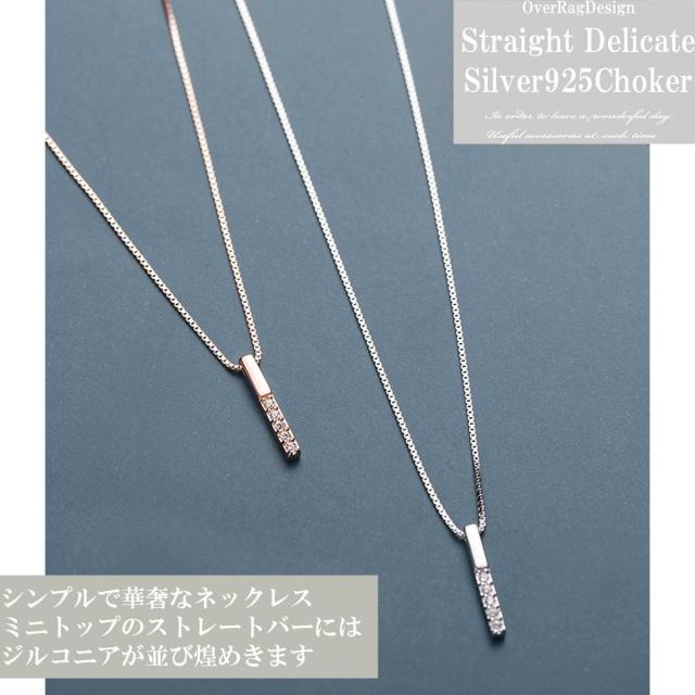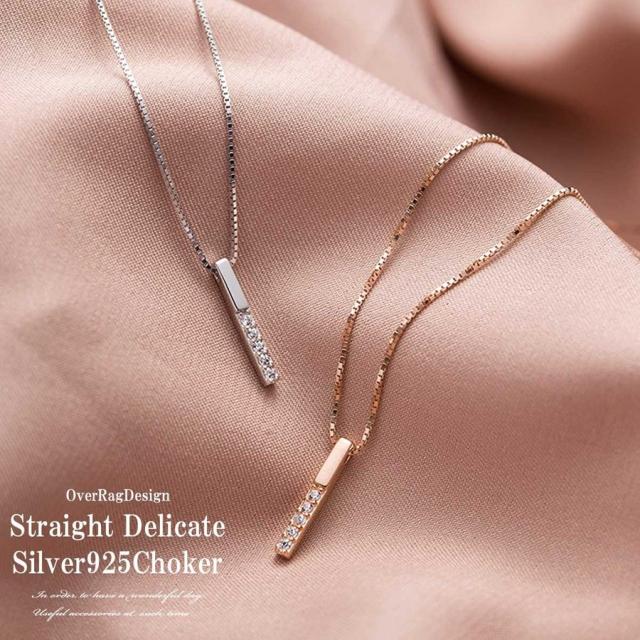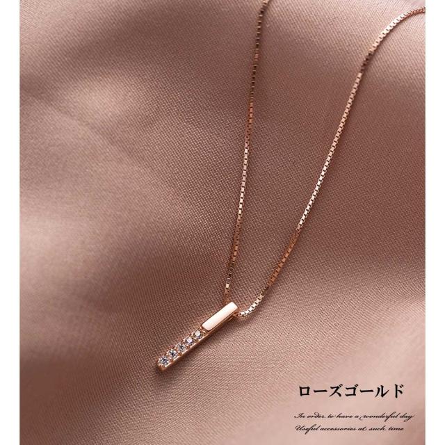 レディース ネックレス ストレートバー華奢ネックレス シルバーネックレスローズゴールドネックレス レディース バートップ シルバー925