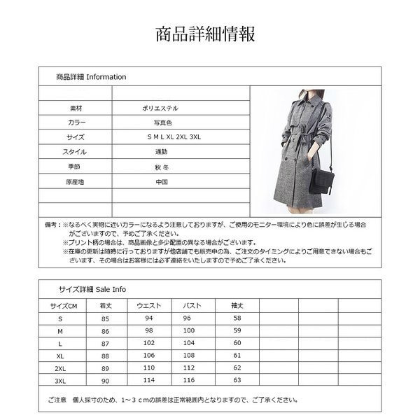 | サイズについての説明 | ■サイズ S 着丈85 ウエスト94 袖丈58 バスト96 M 着丈86 ウエスト98 袖丈59 バスト100 L 着丈87 ウエスト102 袖丈60 バスト104 XL 着丈88 ウエスト106 袖丈61 バスト108 2XL 着丈89 ウエスト110 袖丈62 バスト112 3XL 着丈90 ウエスト114 袖丈63 バスト116 |