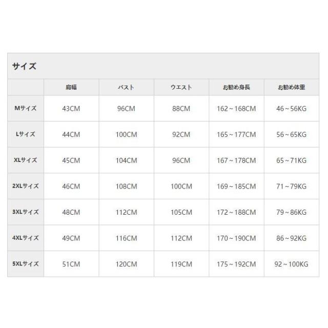 | サイズ | M L XL 2XL 3XL 4XL 5XL |