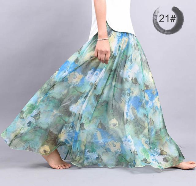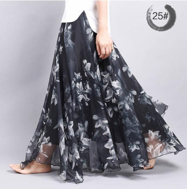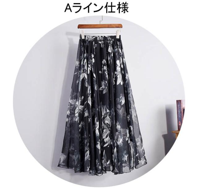 フレアスカート プリント柄 マキシ丈 シフォンスカート Aライン レディース ロングスカート 花柄 マキシ丈スカート ロング丈スカート シフォンスカート
