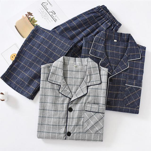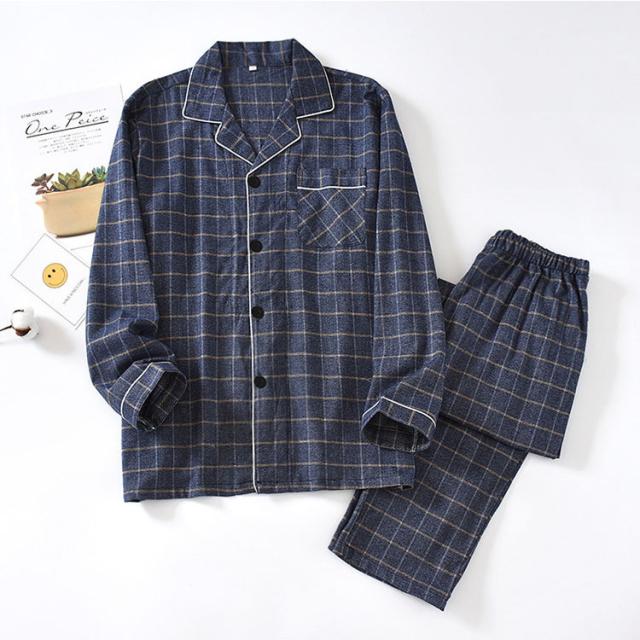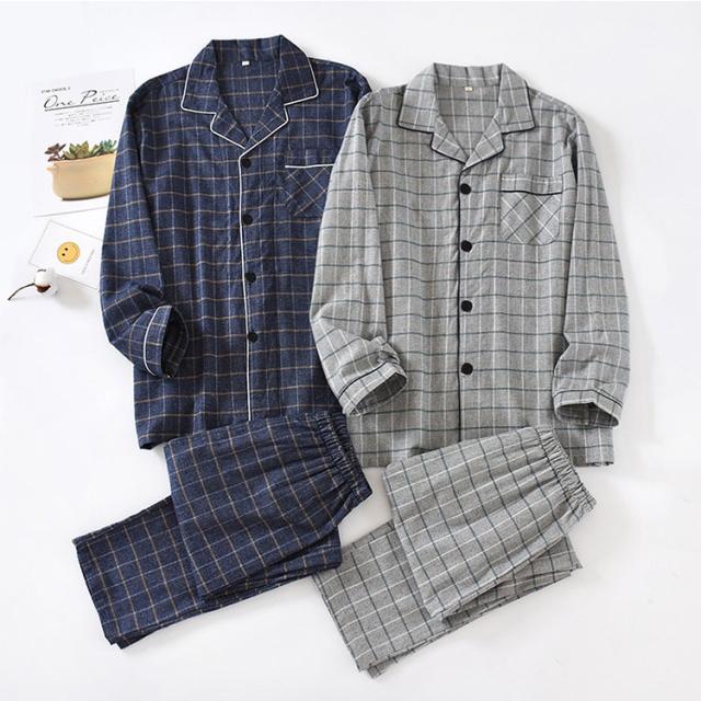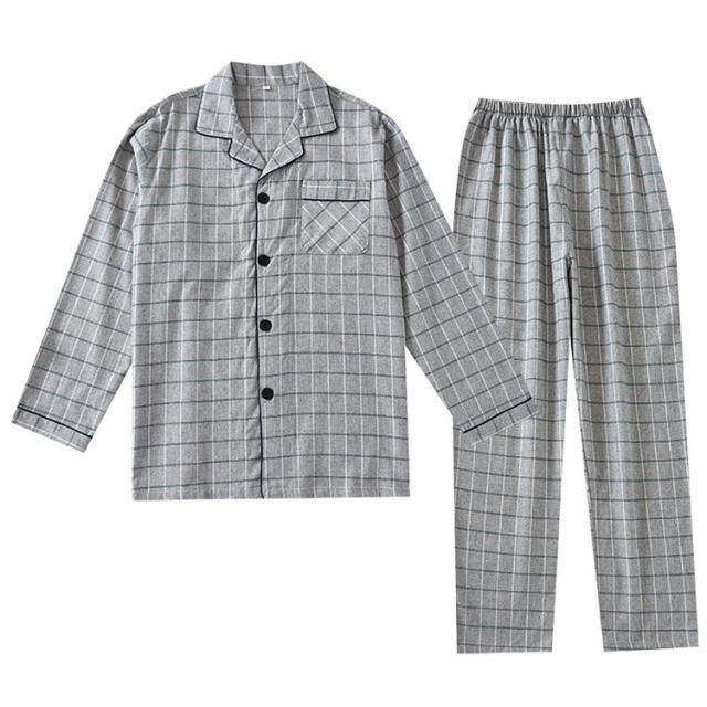パジャマ 大きいサイズ パジャマ 春秋 ルームウェア 2点セット上下セット綿 チェック柄 前開きパジャマ 長袖 柔らかい 快適 紳士用 メンズ