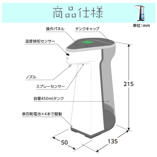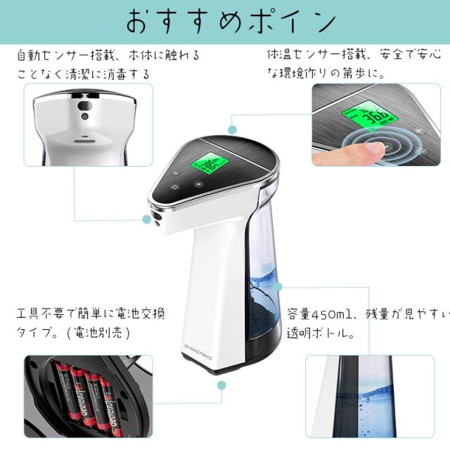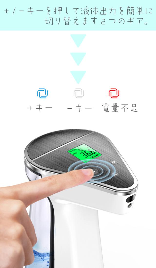 手指消毒 自動噴霧器 消毒液 自動噴霧器 噴霧量調整 自動噴霧器 消毒液 手指消毒 450ML アルコール消毒 自動 温度測定機能付き 非接触型赤外線体温計 検温