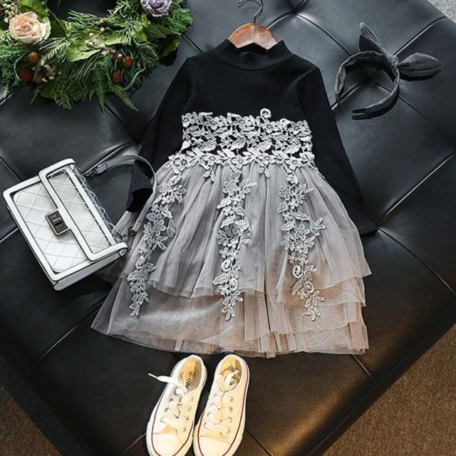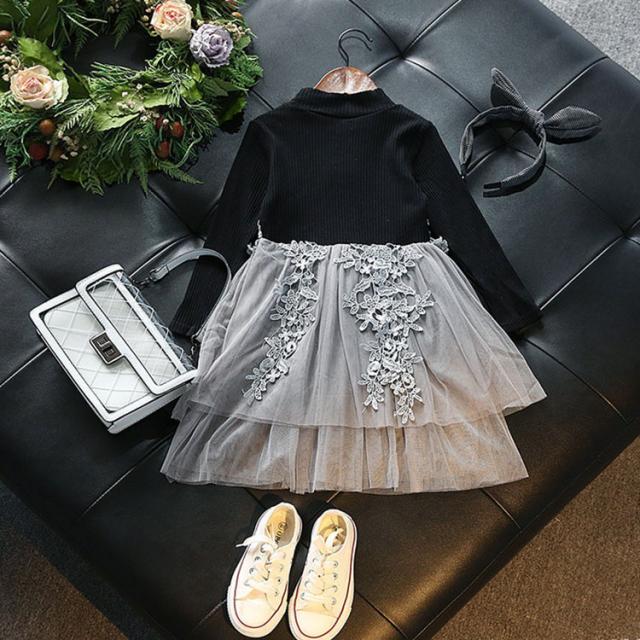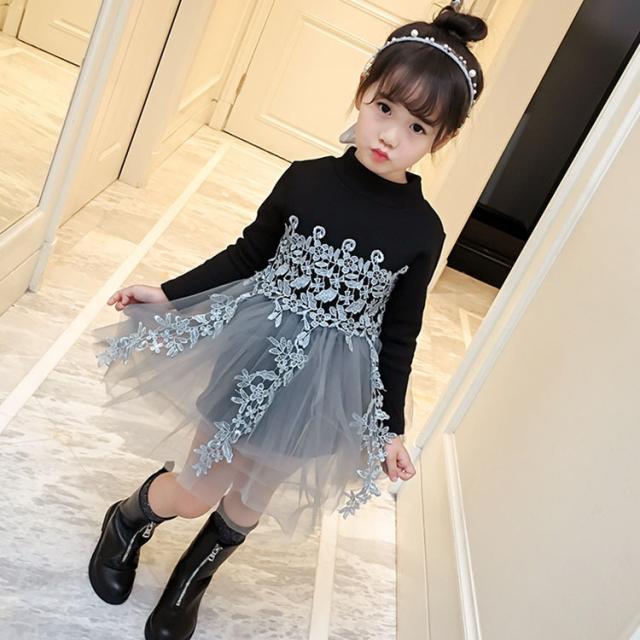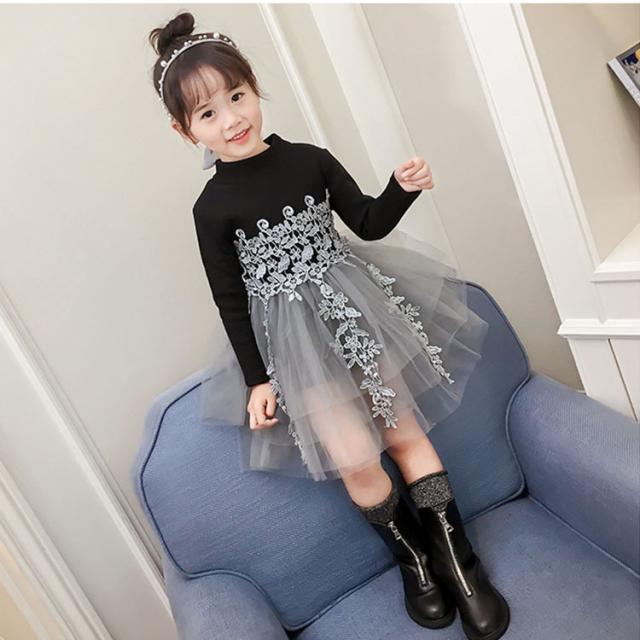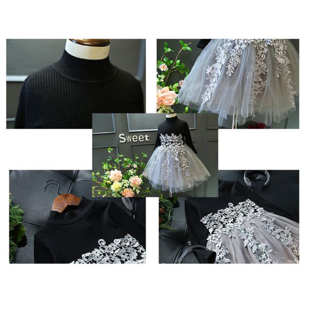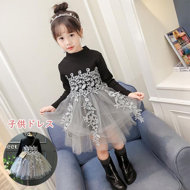 春秋 子供ワンピース ニット キッズ 韓国子供服 女の子 黒ワンピ ベビードレス 可愛い 子どもドレス 赤ちゃん 子供ワンピース 卒園式 ふわふわ 長袖