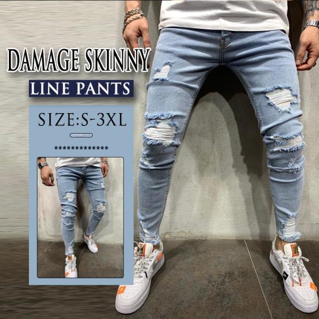 ダメージ加工 メンズ メンズ スキニーデニム スキニーパンツ ダメージジーンズ アンクルパンツ メンズ ボトムス ジーンズ ダメージジーンズ
