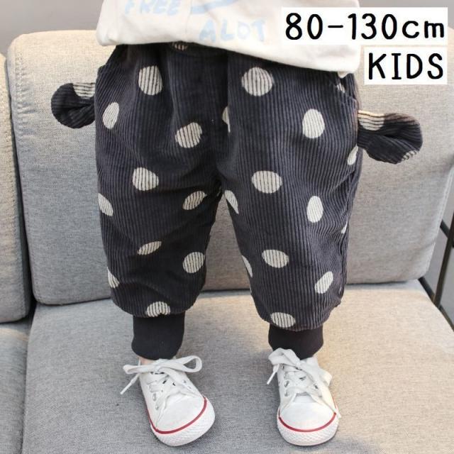 長ズボン 長ズボン ロングパンツ 水玉 子供服 コーデュロイ ポケット ドット 女の子 ウエストゴム キッズ おしゃれ かわいい お出かけ 耳付き