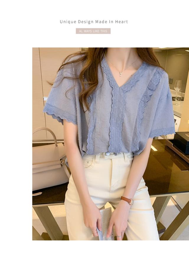 40代 オシャレブラウス レースシャツ ブラウス 春夏新作 半袖トップス ブラウス vネック 上品 大人 通勤OL ゆったり レディース