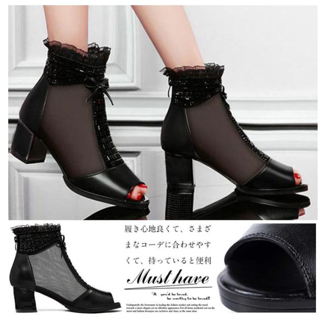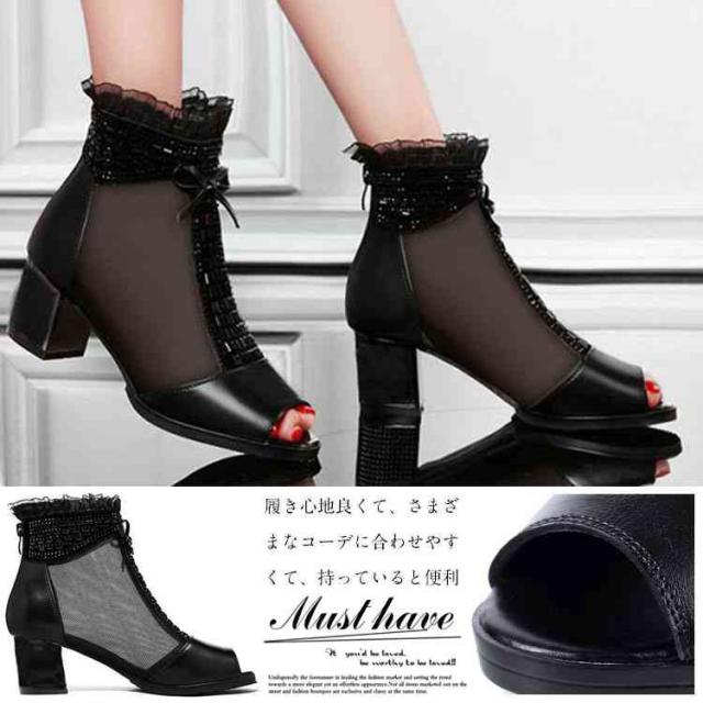レディース サンダル ブーツサンダル サンダル ハイヒール サンダル 透け 美脚 レディースシューズ 厚底 ストーム オープントゥ メッシュ