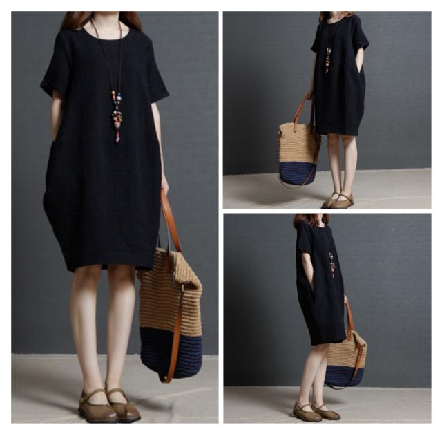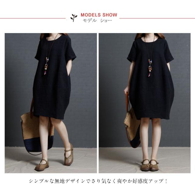ワンピース 無地ワンピ マタニティワンピース シンプル ラウンドネック ワンピース ミディアムワンピース