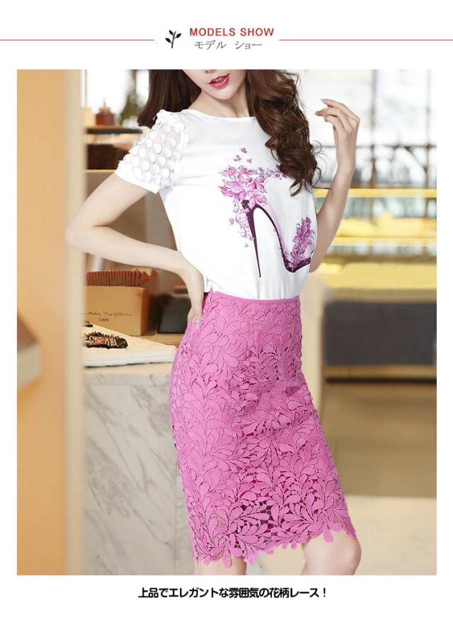 タイトスカート 膝丈スカート レーススカート ミディアム丈 レディース 通勤 OL 細身 大人 タイトスカート パーティー 花柄