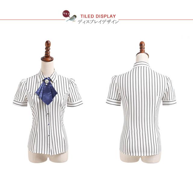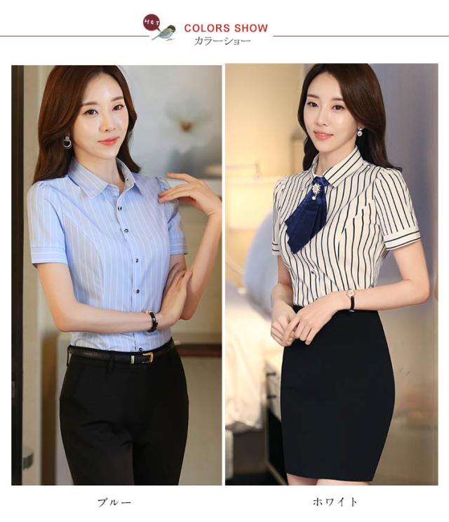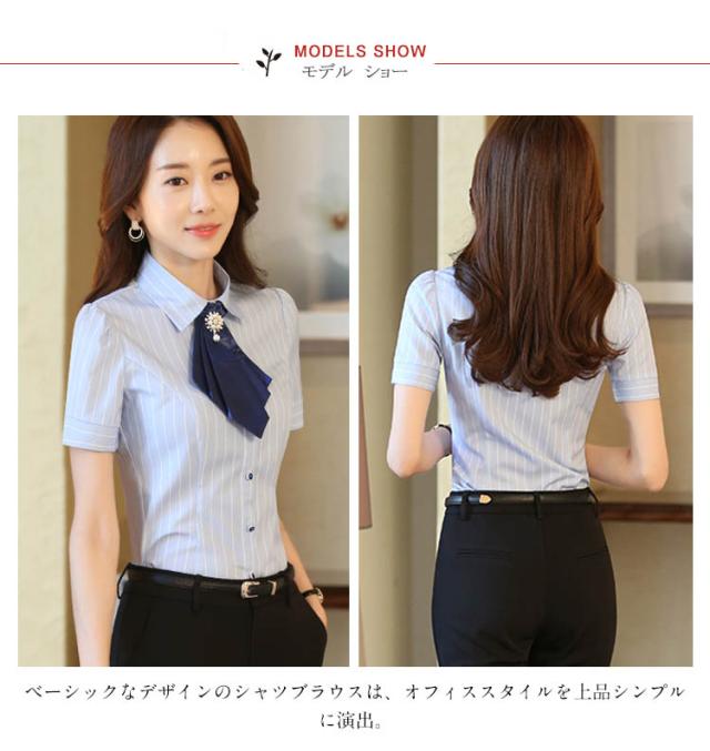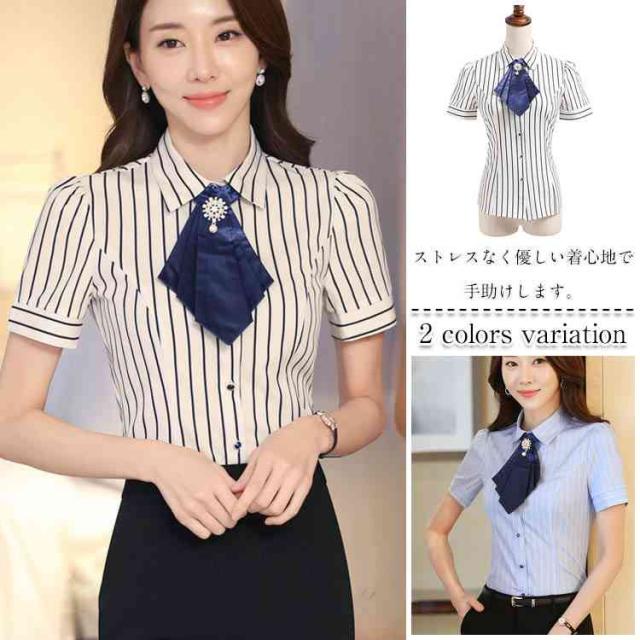 半袖 通勤 ブラウス ストライプ レディースシャツ ネクタイ付き レディースブラウス ビジネス シャツ 事務服 オフィス ォーマル yシャツ 夏 夏服 ブラウス