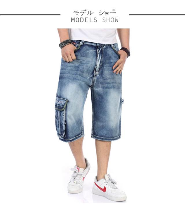 大きいサイズ 大きいサイズ ジーンズ バギーパンツ メンズ 個性的 オシャレ ハーフパンツ デニム B系 BIGサイズ ゆったり ハイカジュアル