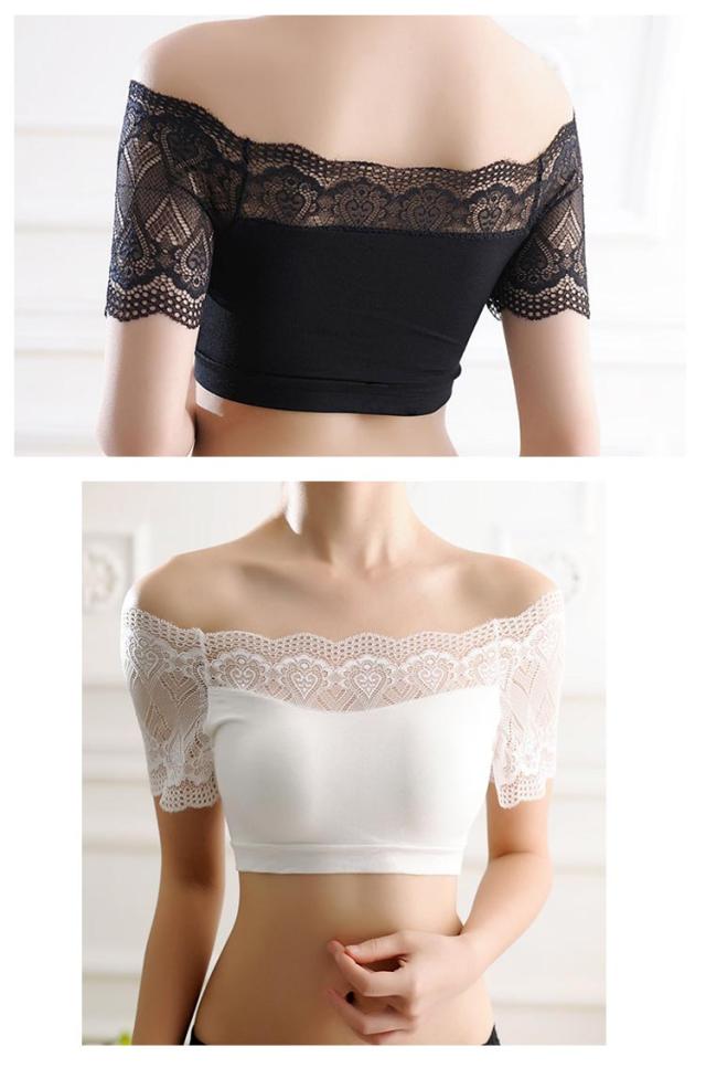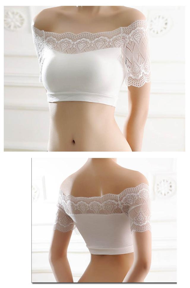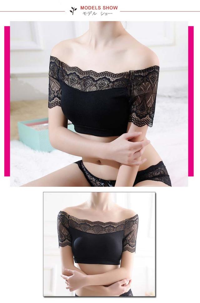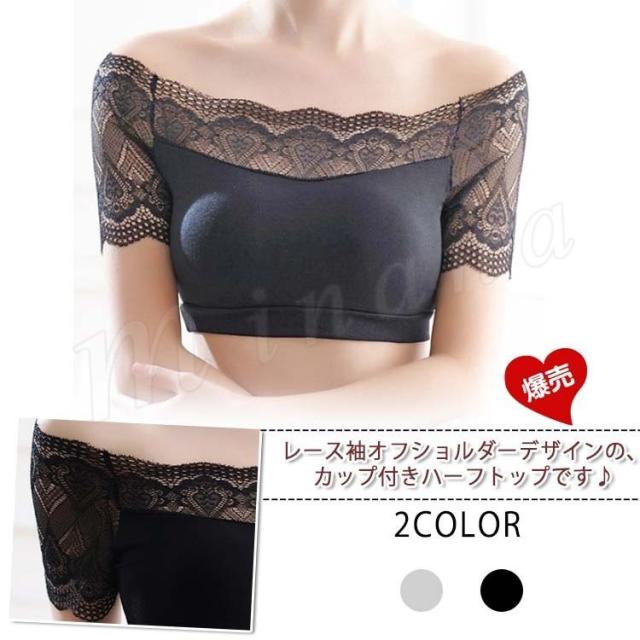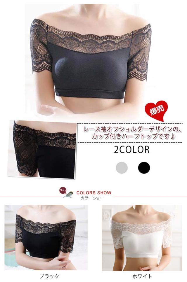 レース袖 オフショルダー カップ付きハーフトップ モダール レディース インナー レース袖